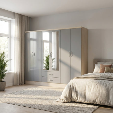 Paddington 6 Door 2 Drawer Mirrored Wardrobe