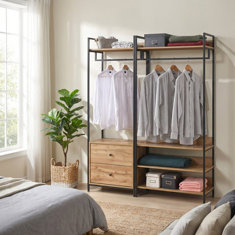 Alva Open Wardrobe Clothes Rail with 2 Drawers & 4 Shelves Set