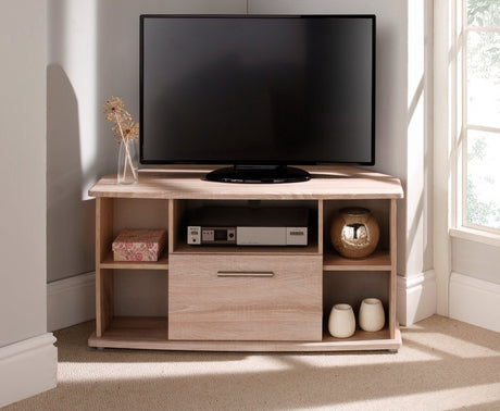 Victoria 1 Drawer Open Shelf Corner TV Unit with Riviera Oak Top