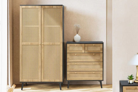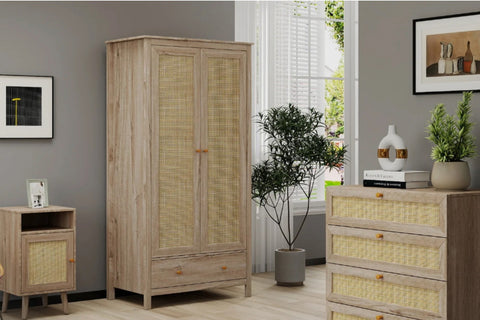 Willow Rattan 2 Door Double Wardrobe with 1 Drawer