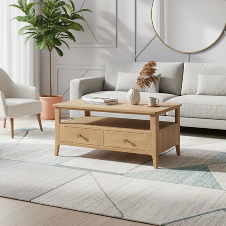 Cypress 2 Drawer Open Shelf Rattan Coffee Table