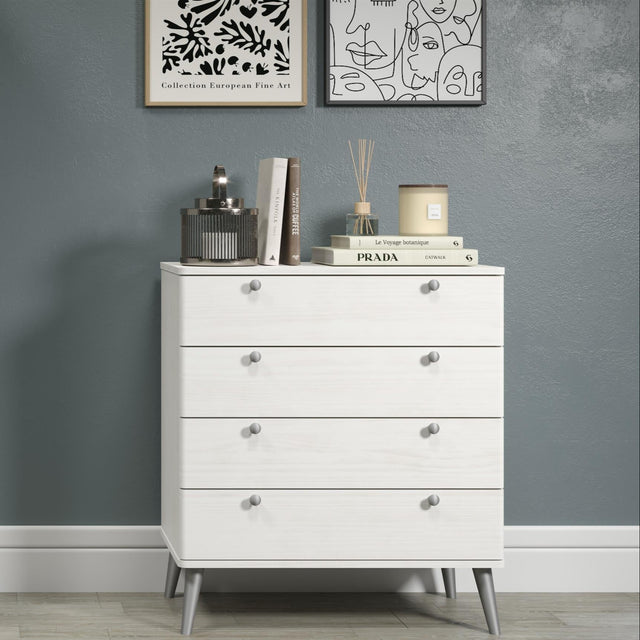 The Augusta Curved White 4 Drawer Chest offers a fresh, modern aesthetic with a smooth, curved silhouette and clean white finish. This dresser chest of drawers blends functionality with style, providing four spacious drawers ideal for organising clothing or essentials. Its contemporary design complements a wide range of interiors, making it a versatile chest dresser for bedrooms, hallways, or living spaces. Easy to assemble, this piece is perfect for those seeking sleek storage with a designer edge.