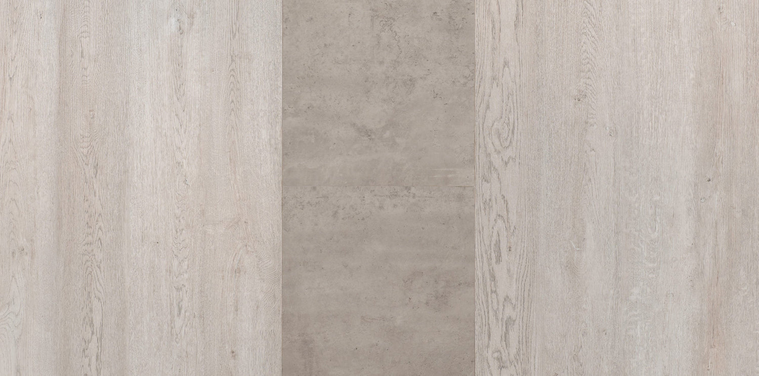 - Contemporary two-tone concrete and grey oak effect table