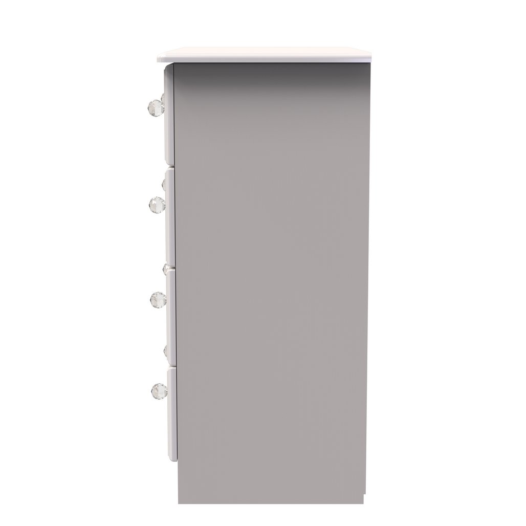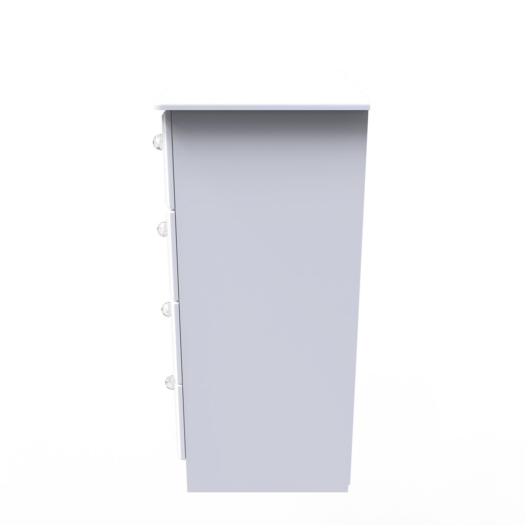 Bring classic elegance and modern practicality to your bedroom with the Balmoral 4 Drawer Chest. With four spacious drawers, intricate drawer front detailing, and sparkling crystal handles, it’s a stylish storage piece that adds a luxurious touch. Finished in your choice of Kashmir Gloss or White Gloss, and delivered fully assembled for immediate use.