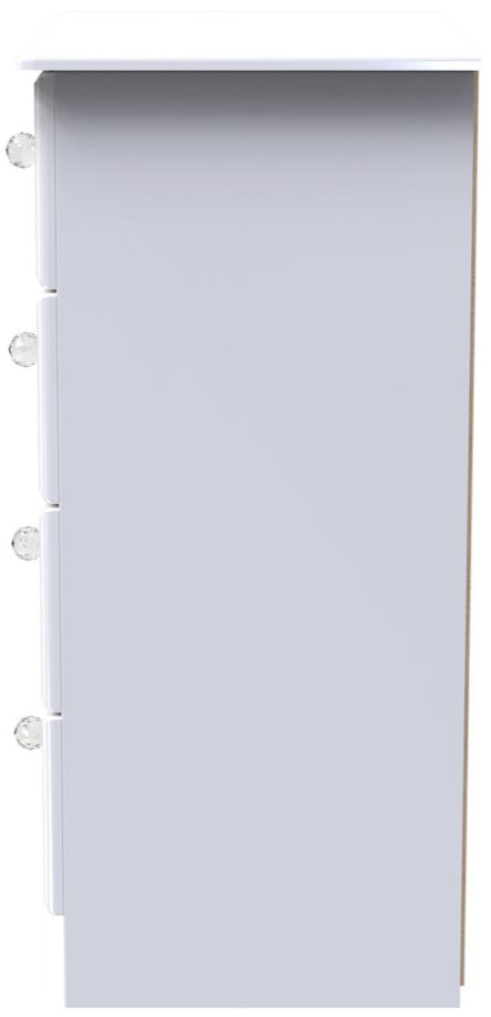 Available in two high-gloss finishes, Kashmir Gloss or White Gloss, this chest features intricately detailed drawer fronts and crystal-style handles, making it a standout piece in chic, elegant spaces.