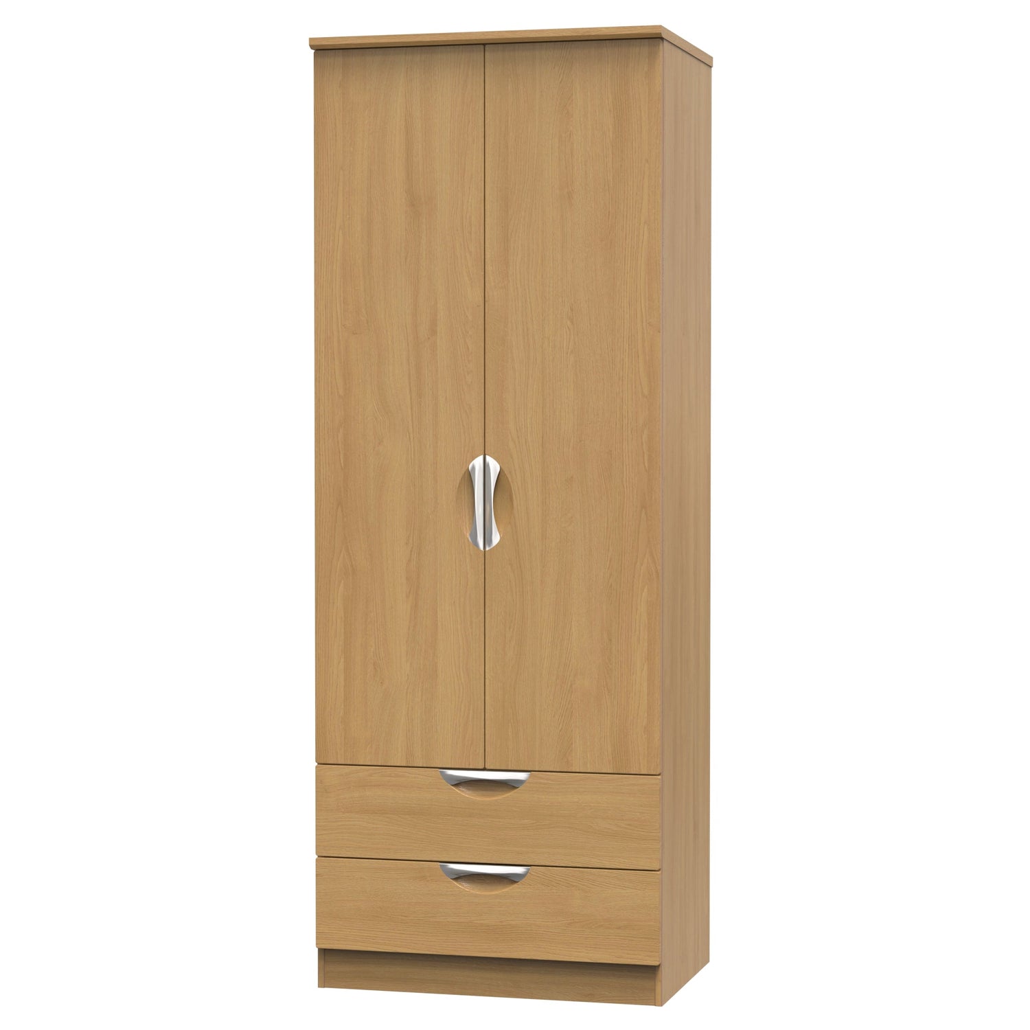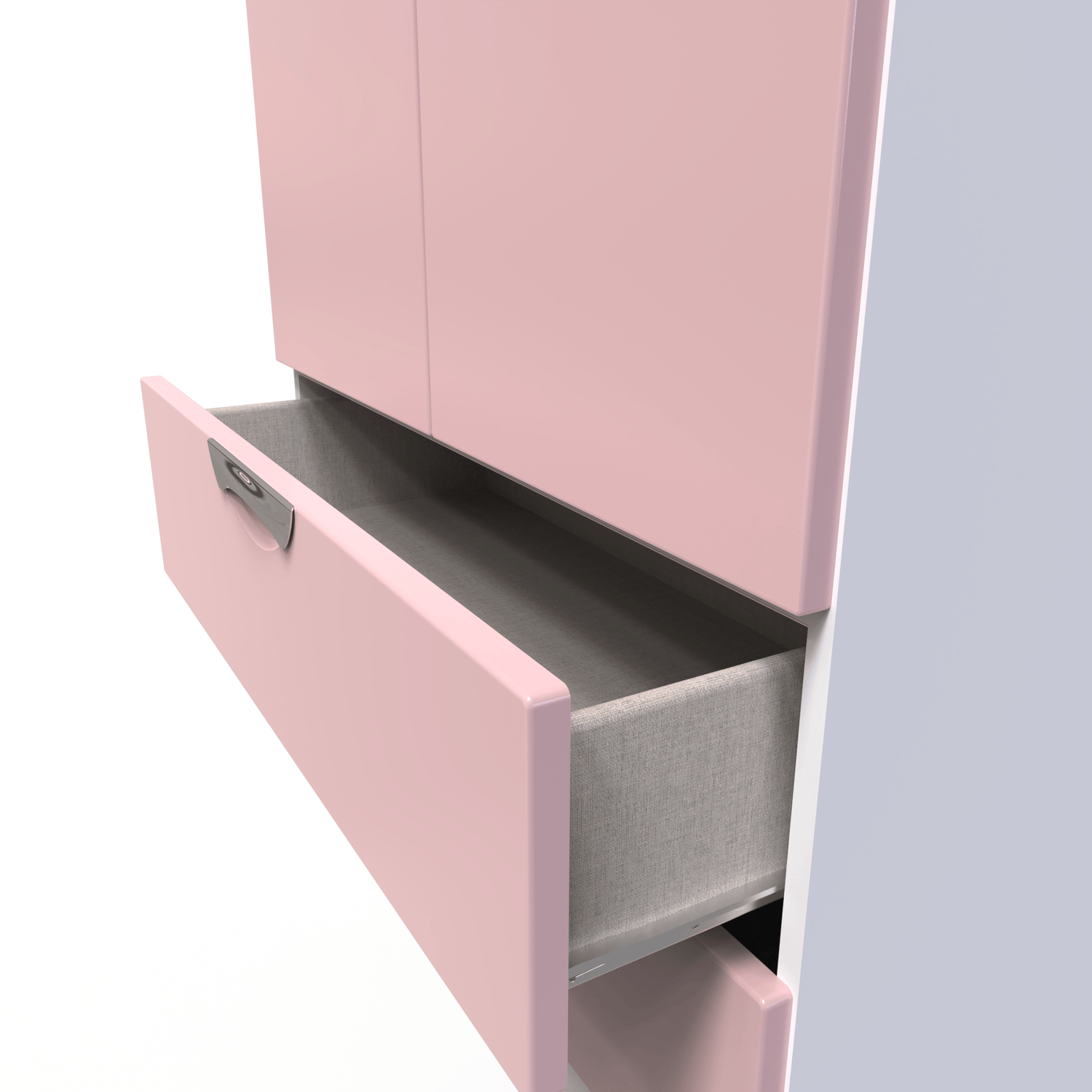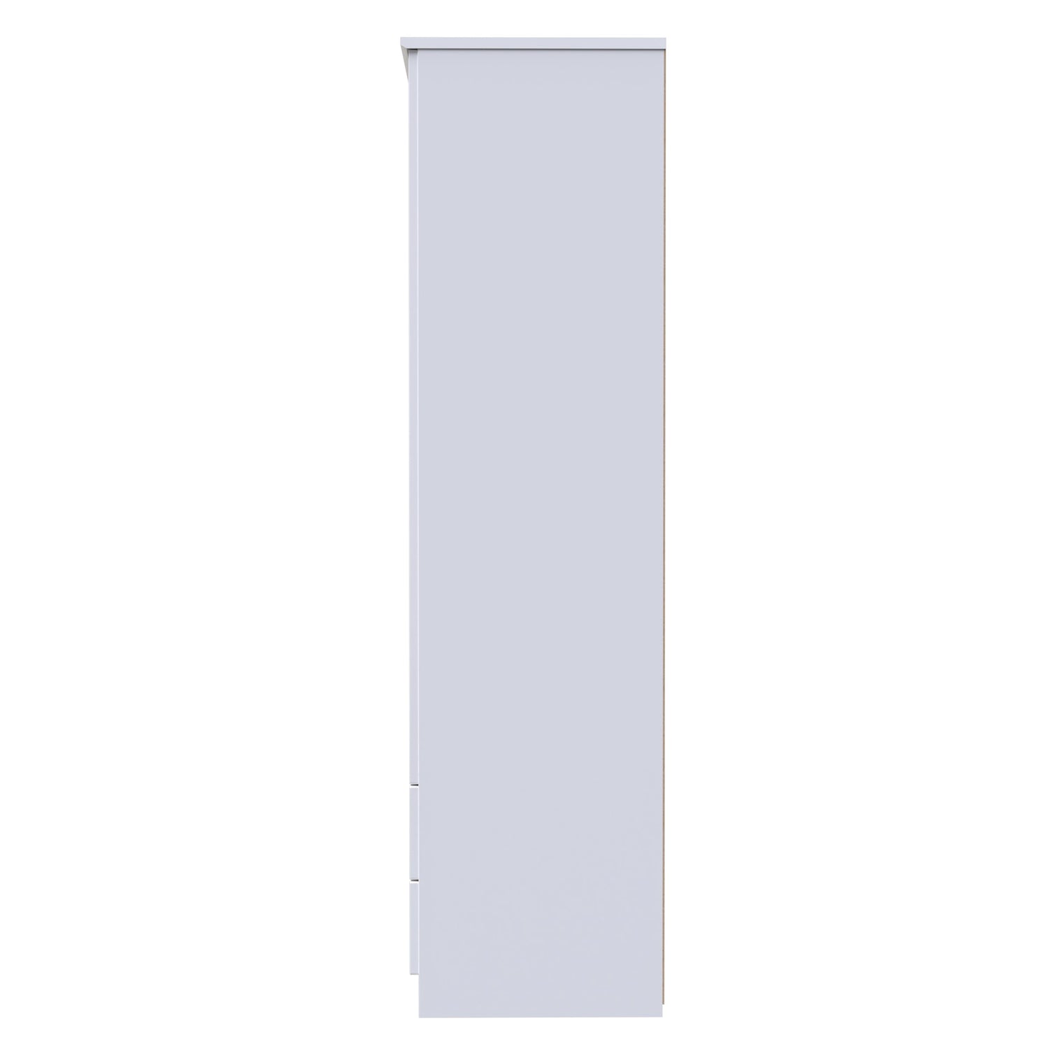 Introducing the Camden Black Gloss 2 Door 2 Drawer Wardrobe, offering a clean, contemporary aesthetic and practical functionality for modern homes. Designed to provide organised space, its scratch-resistant veneer ensures durability against everyday wear. The doors, with distinctive cut-out handles, enhance its style and functionality - a perfect addition to any home.