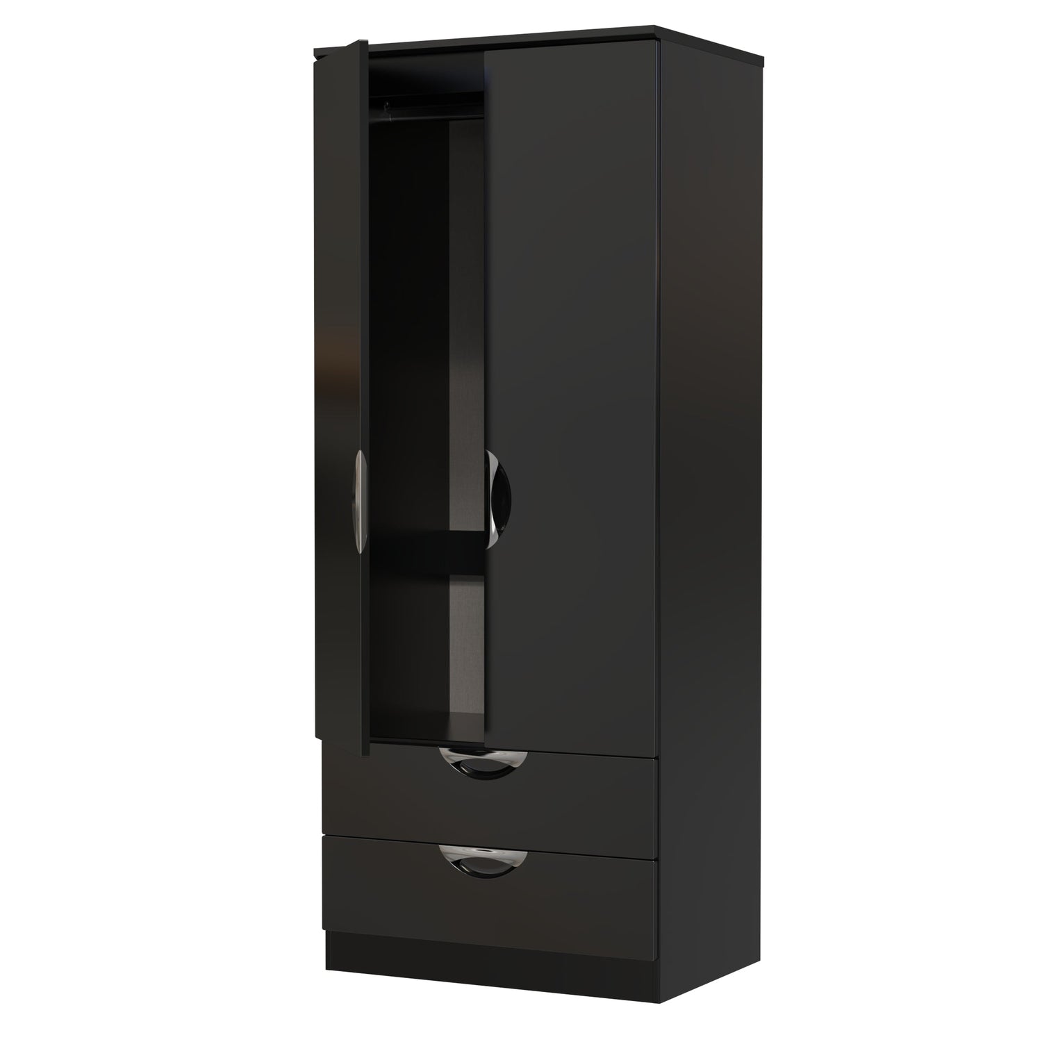 Camden 2 Door 2 Drawer Wardrobe - Black Gloss is backordered and will ship as soon as it is back in stock.