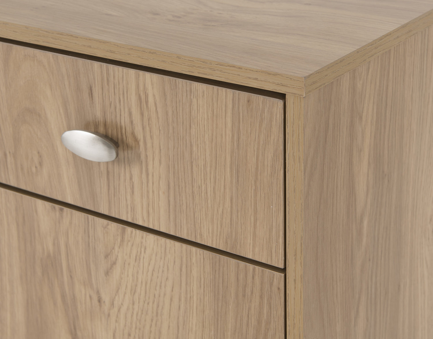 - Finished in a stylish medium oak effect