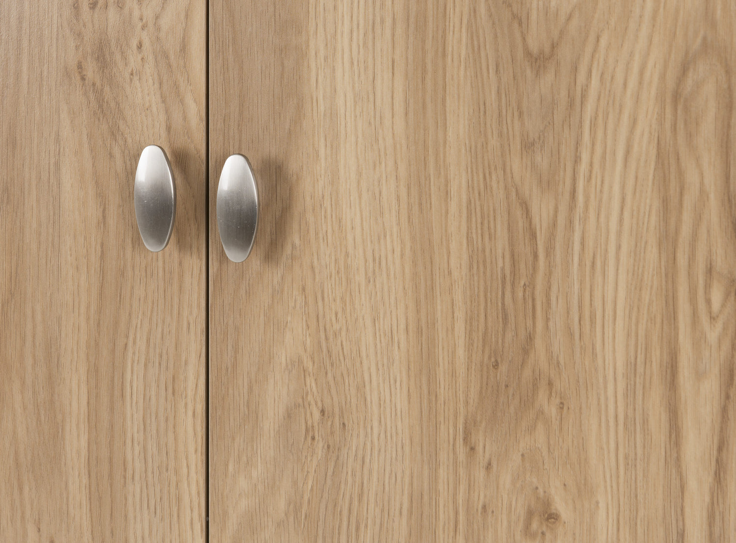 - Unique metal oval-shaped handles for a refined look