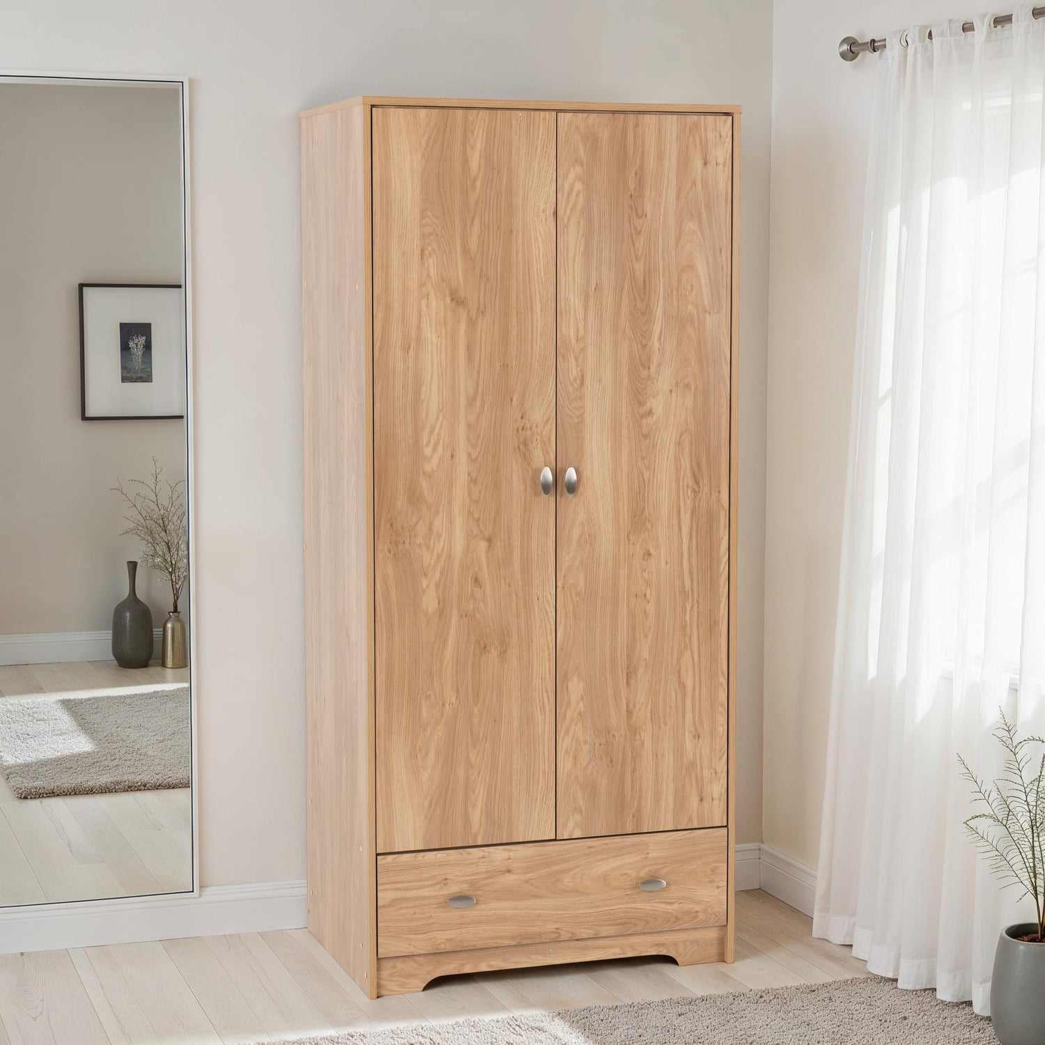 - Complete 3-piece bedroom set: wardrobe, chest, and bedside table