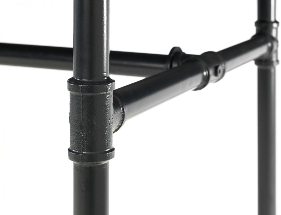 - Crafted from Solid Elm wood and Satin black powder coated steel