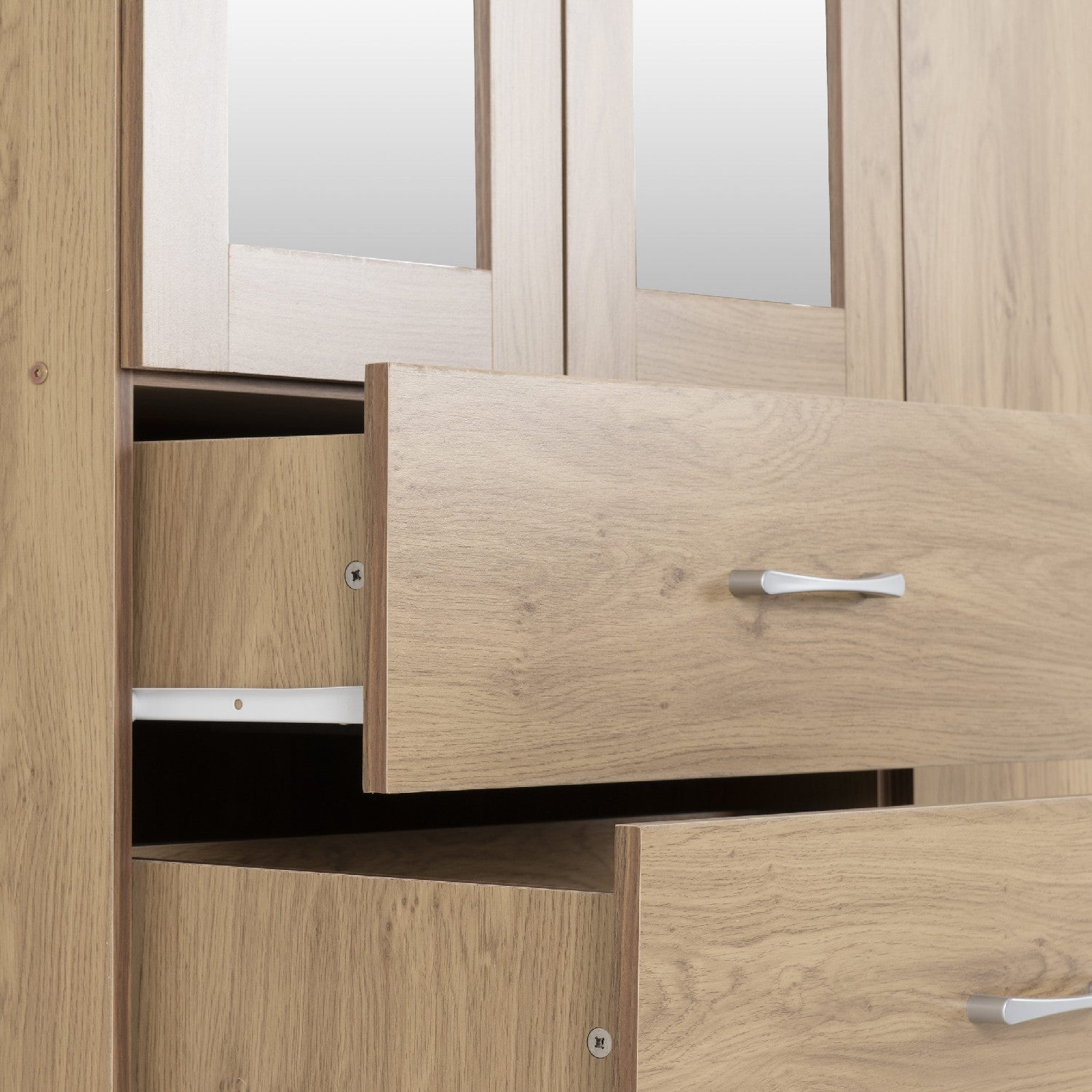 Charles 4 Door 2 Drawer Mirrored Wardrobe - Oak Effect is backordered and will ship as soon as it is back in stock.
