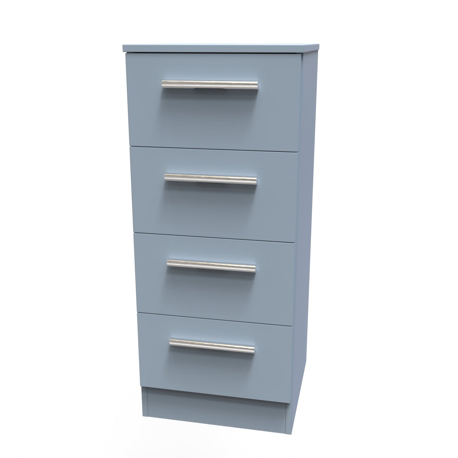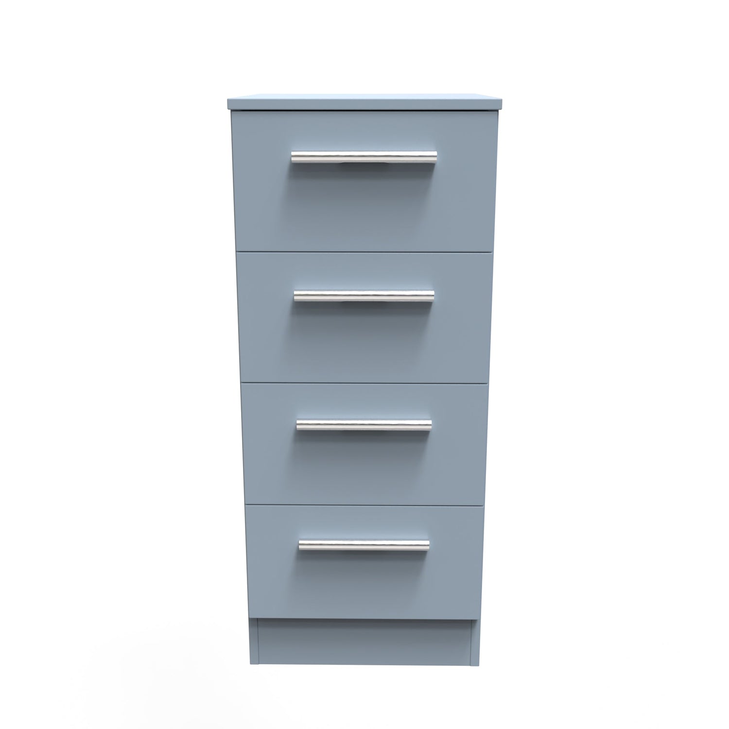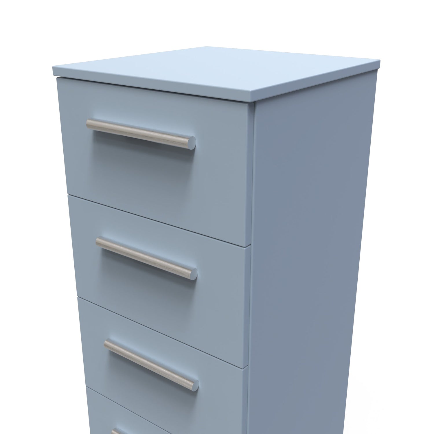 Contrast 4 Drawer Narrow Tallboy Chest - Blue is backordered and will ship as soon as it is back in stock.