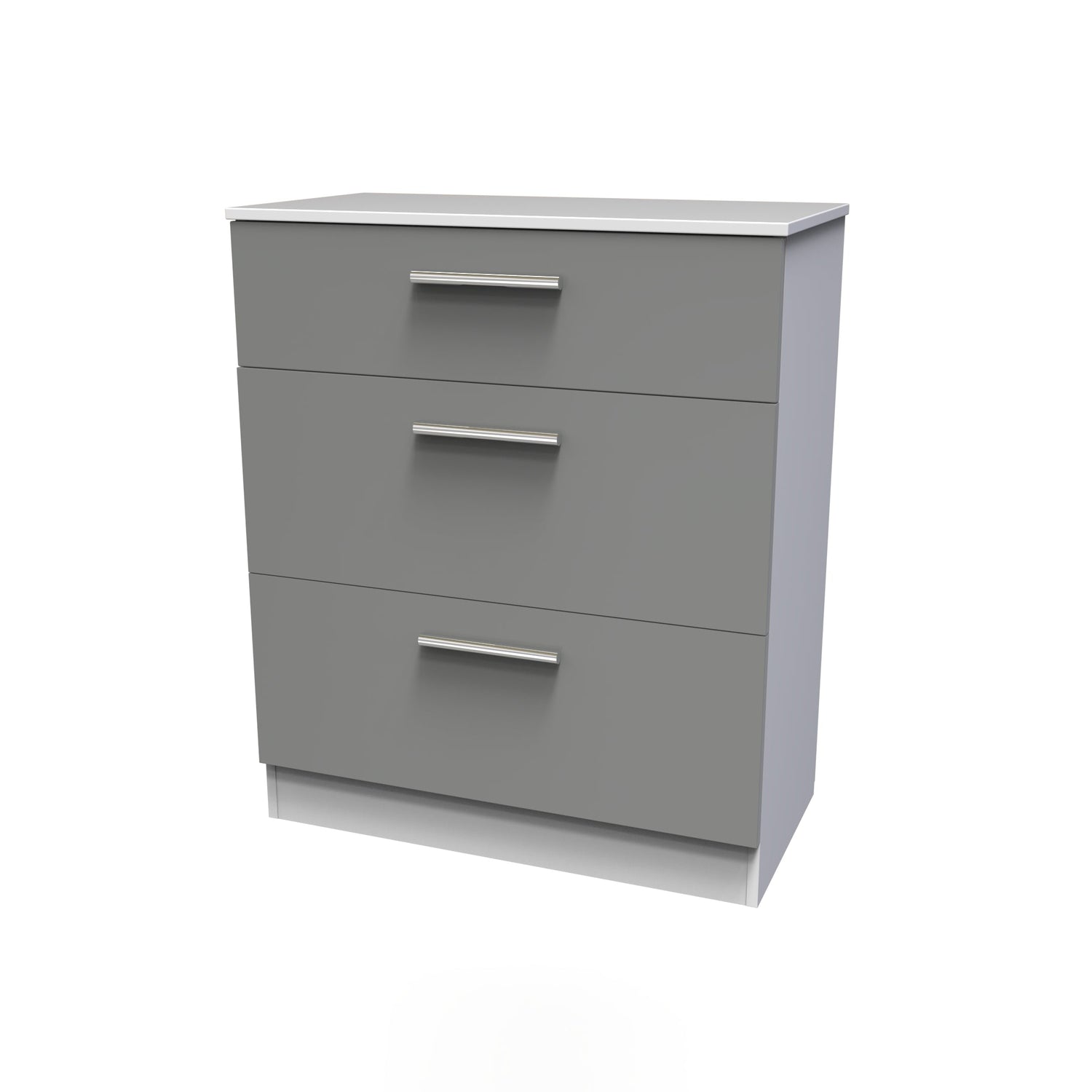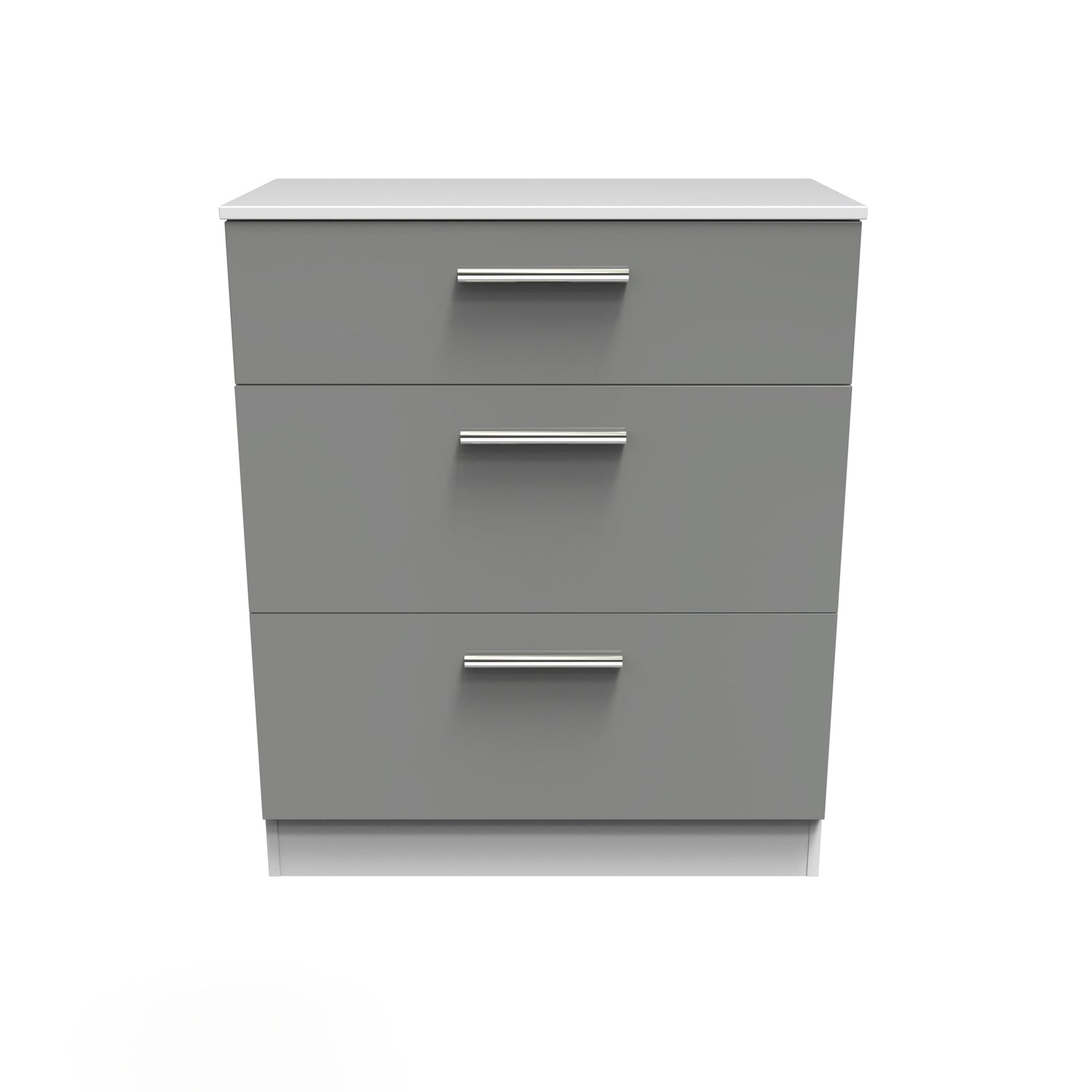 Elevate your bedroom to perfection with the exquisite Contrast Dusk Grey and White 3 Drawer Chest, designed to fulfil your dreams of a stunning bedroom space. Crafted from premium materials and boasting long-lasting finishes, this range exudes elegance and sophistication. Each piece is crafted to enhance the beauty of any bedroom style. The fronts of the Contrast range are adorned with sleek metal handles, adding a touch of modern flair. As you open the drawers, you'll be greeted by the smooth gliding of metal runners and the luxurious linen-look interior, offering both style and functionality. Delivered fully assembled for your convenience, this range is the perfect way to effortlessly transform your home.