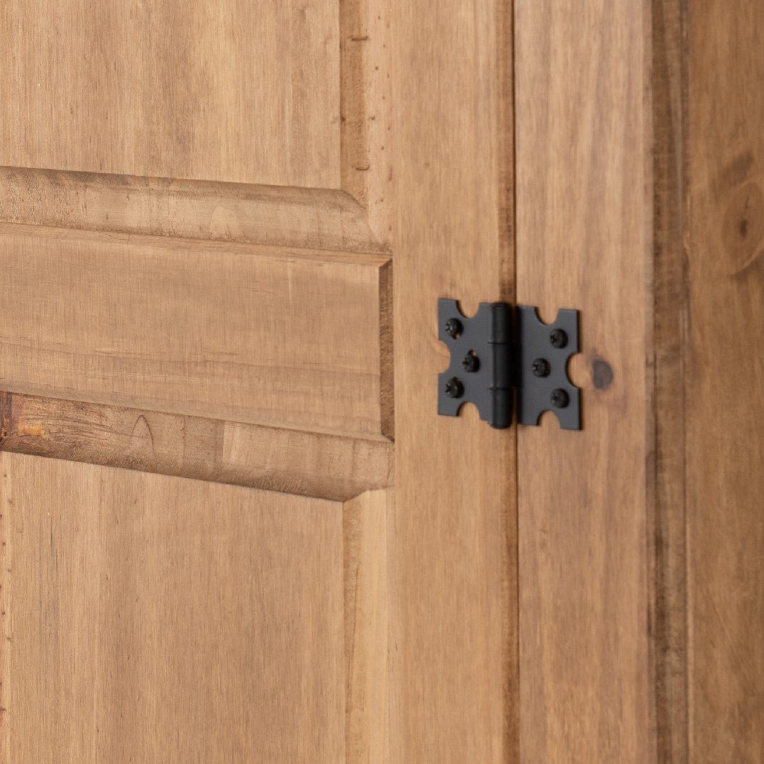 The Corona Wardrobe presents an excellent storage solution for living spaces. With a distressed waxed pine finish, this unit features a robust pine construction - its straightforward, sturdy, and traditional design ensures that the Corona wardrobe remains a striking focal point in your living space.