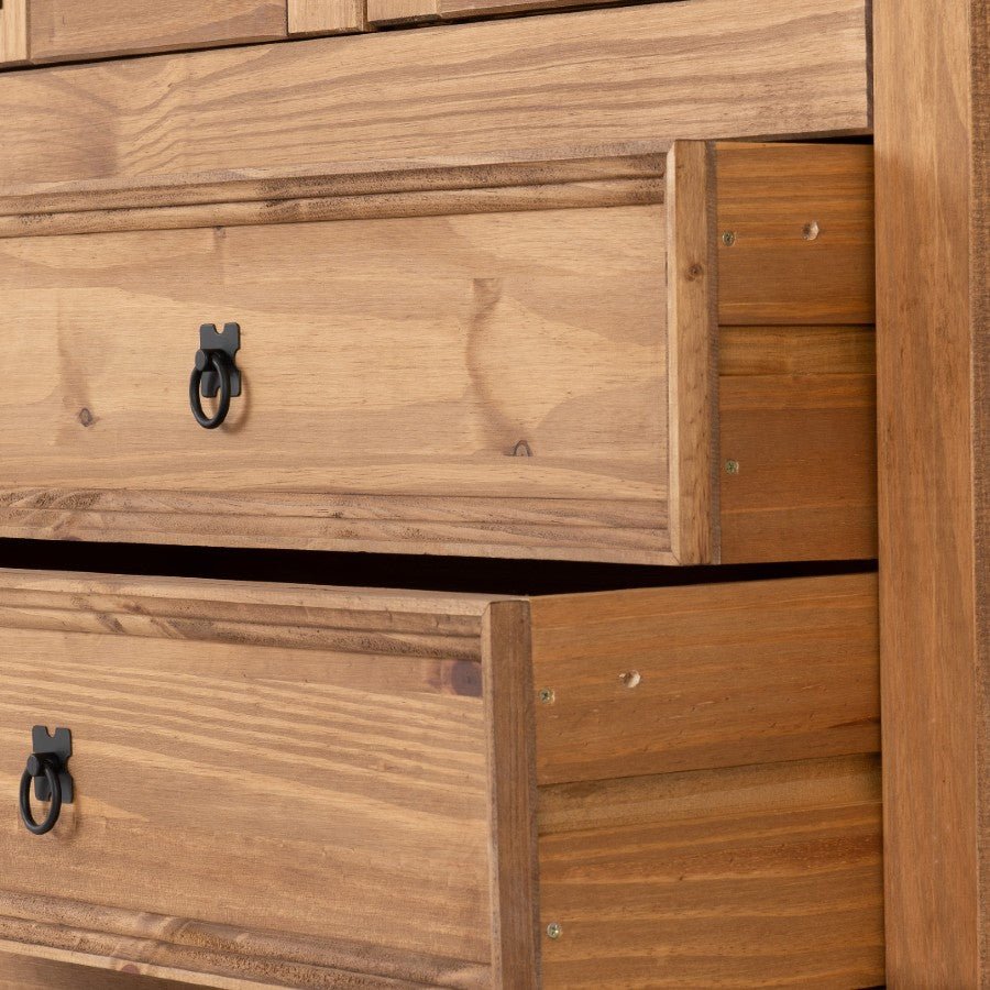 The Corona 2 Door 2 Drawer Glass Display Unit presents an excellent storage solution for compact living spaces. With a distressed waxed pine finish, this unit features a robust pine construction, with two doors and two drawers concealing shelving. Its straightforward, sturdy, and traditional design ensures that the Corona Display Unit becomes a striking focal point in your living space.