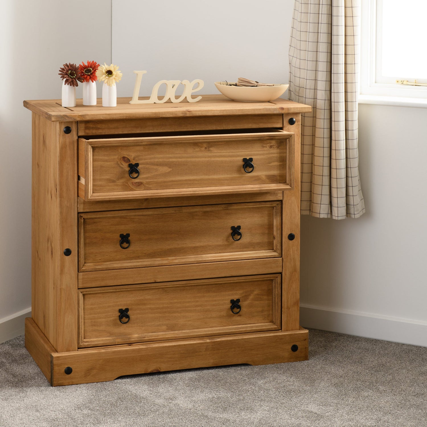 Corona 3 Drawer Chest - Pine is backordered and will ship as soon as it is back in stock.