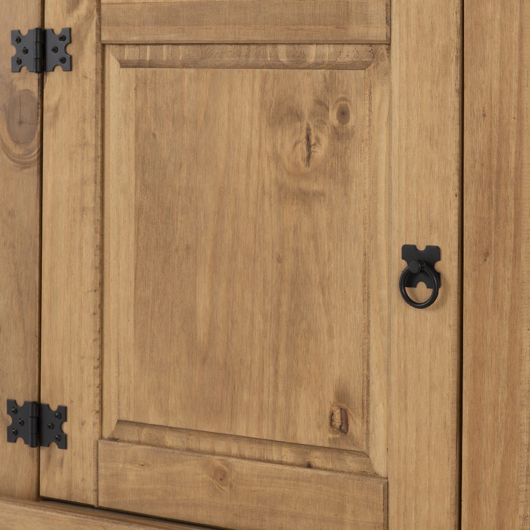 The Corona corner unit presents an excellent storage solution for living spaces. With a distressed waxed pine finish, this unit features a robust pine construction, with a cupboard and three shelves. Its straightforward, sturdy, and traditional design ensures that the Corona corner unit remains a striking focal point in your living space.