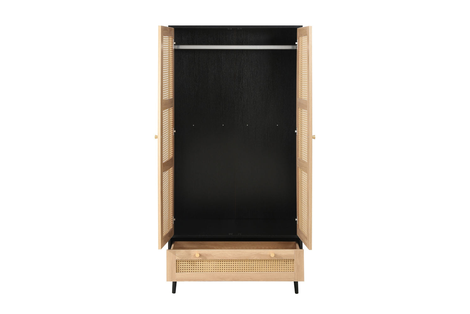 Croxley 2 Door 1 Drawer Wardrobe - Black and Rattan is backordered and will ship as soon as it is back in stock.