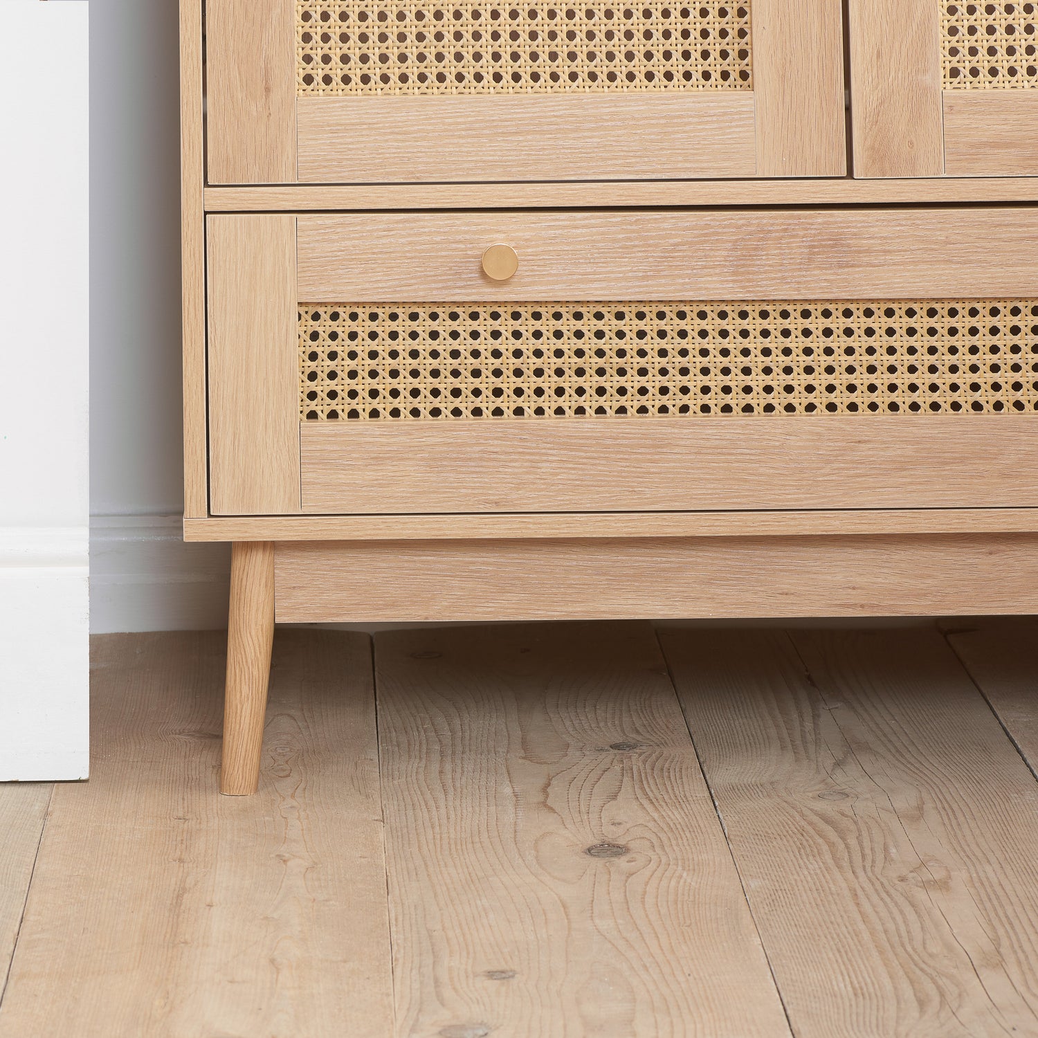 The Croxley wardrobe boasts a full width drawer and hanging for all your clothing needs - the drawers are adorned with exquisite gold handles, adding a touch of elegance. Designed for a natural, airy bedroom feel during the day and transforming into a cosy, warm retreat by night, our Croxley bedroom range offer versatile and stylish options for your home.