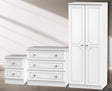 - Includes: 2 Drawer Bedside Table, 3 Drawer Chest of Drawers, and 2 Door Wardrobe