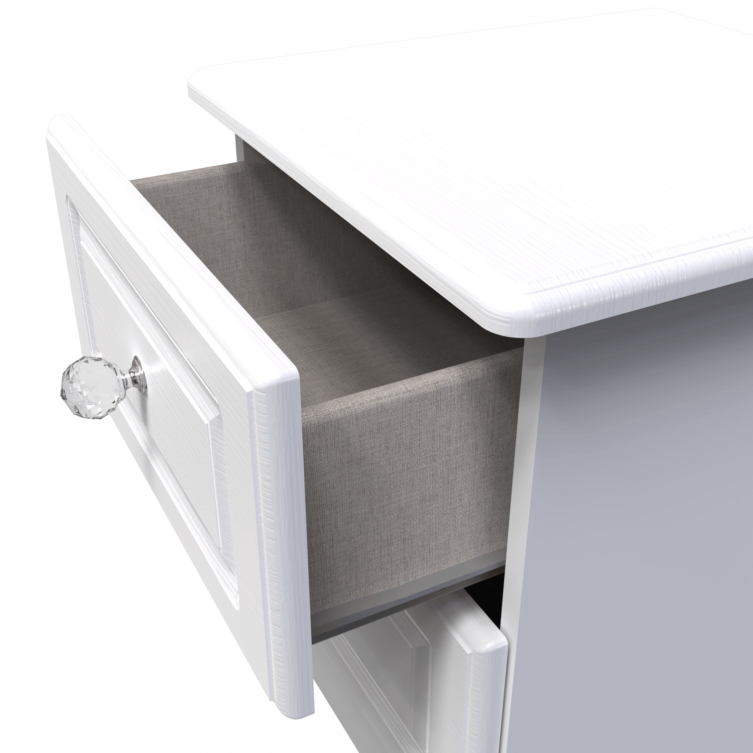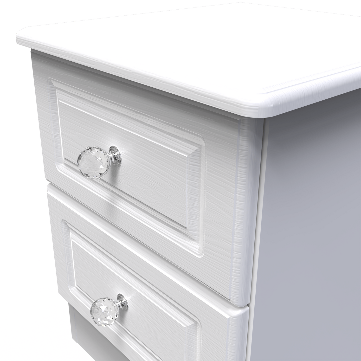 The Crystal 3 Piece Bedroom Set brings timeless elegance and practical storage together, making it a perfect choice for any home. Designed in a traditional style with unique door and drawer fronts, this set comes in a soft White Ash finish, a neutral tone that complements any interior.