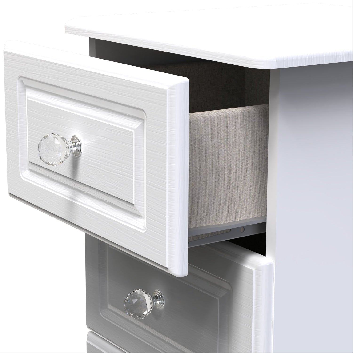 Available in two versatile finishes – Kashmir Ash or White Ash – the set blends seamlessly into both modern and traditional interiors. Each piece is adorned with sparkling crystal handles for a touch of sophistication and finished with a scratch-resistant surface to ensure it stays looking its best. Delivered fully assembled, this set offers both convenience and style.