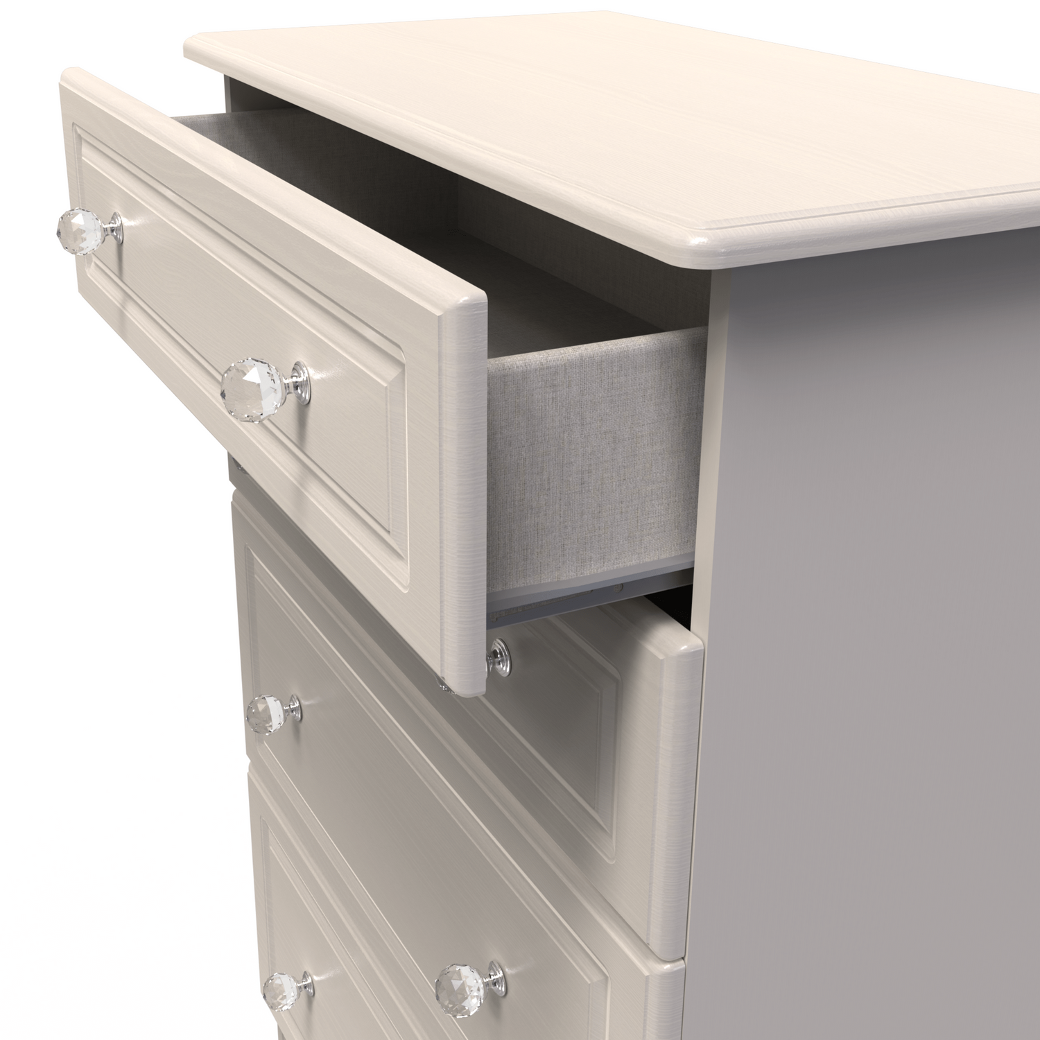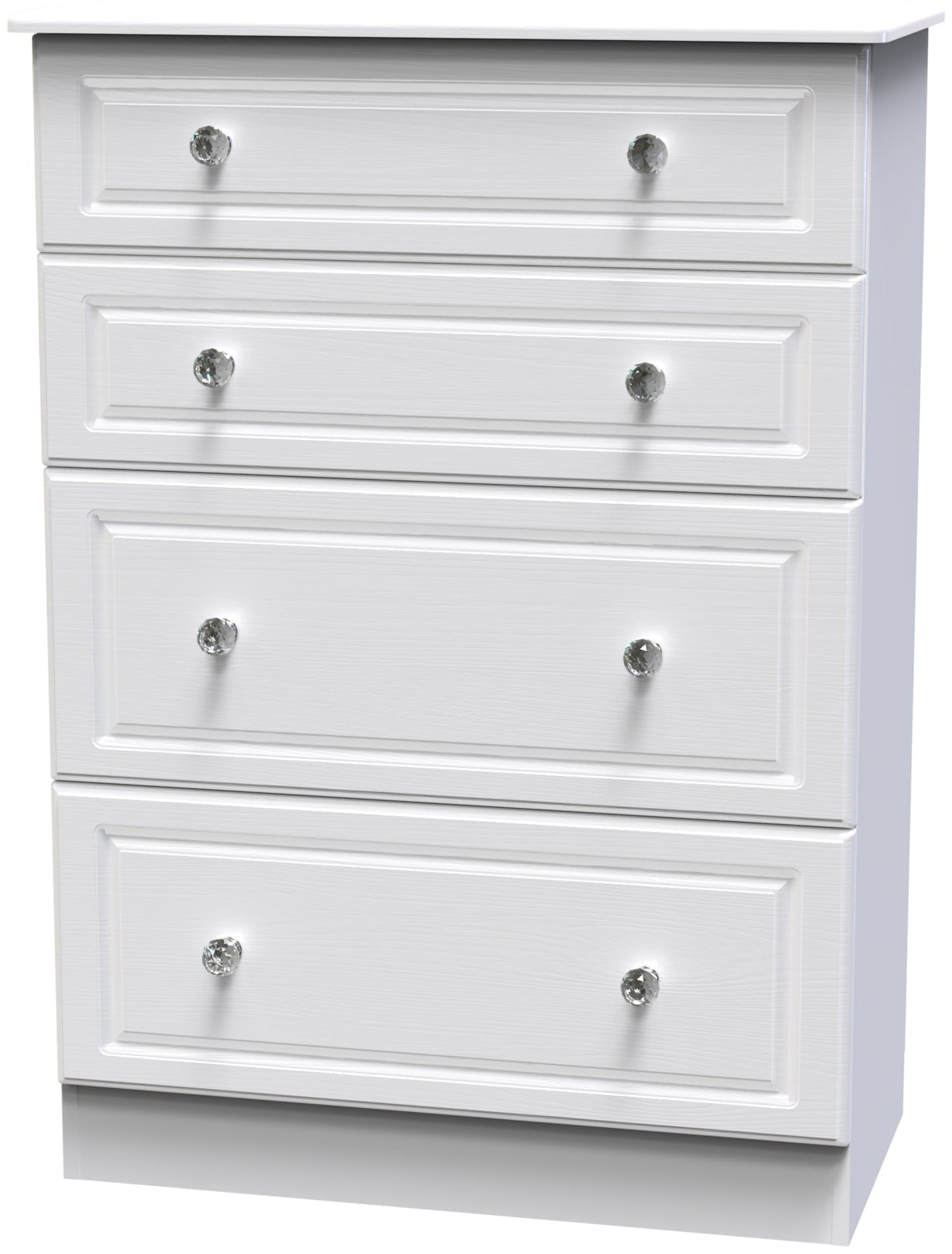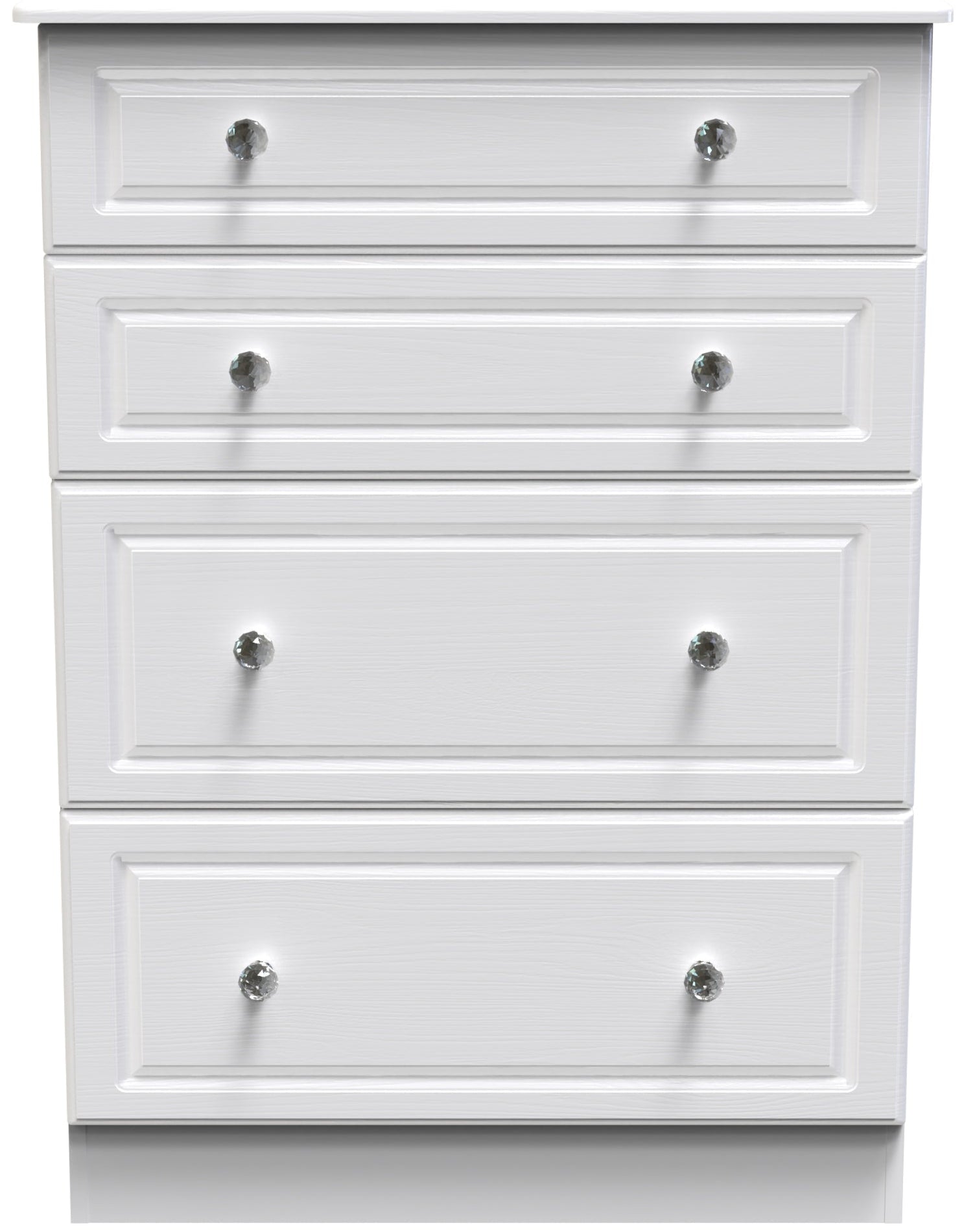 The Crystal 4 Piece Bedroom Set combines timeless elegance with practical storage, making it the perfect choice for creating a beautifully coordinated bedroom. Showcasing a traditional design with unique door and drawer fronts, this collection adds character and charm while maintaining a clean, classic look.