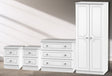 - Includes: two 2 Drawer Bedside Tables, 3 Drawer Chest of Drawers, and 2 Door Wardrobe