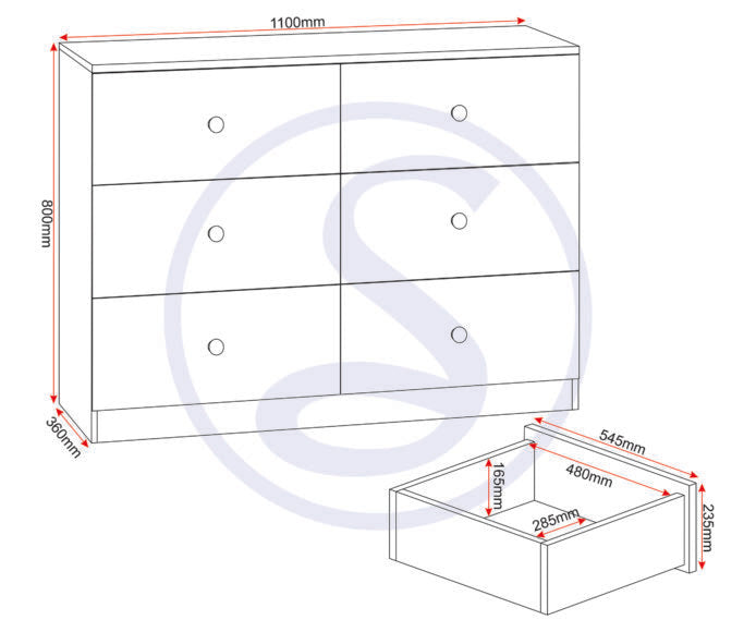 - Six spacious drawers – ideal for clothing and accessories