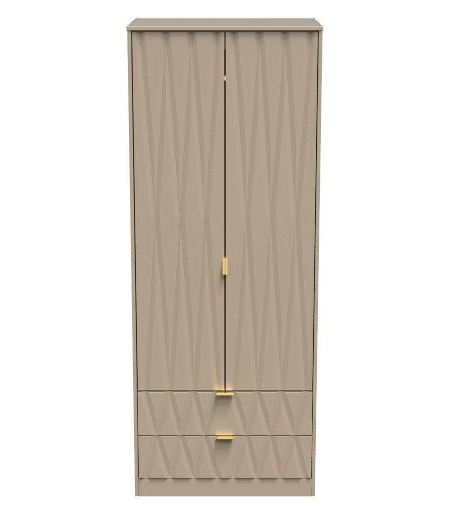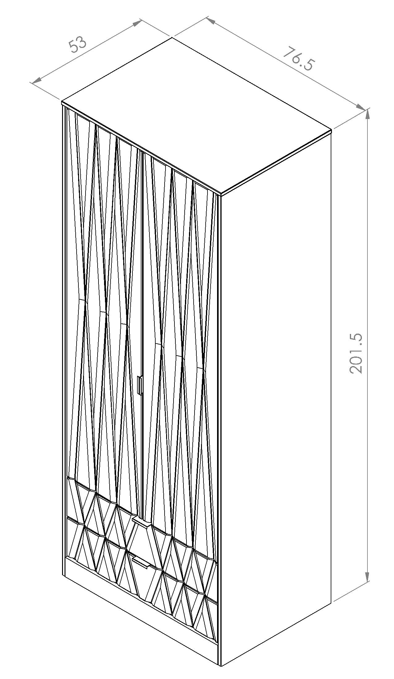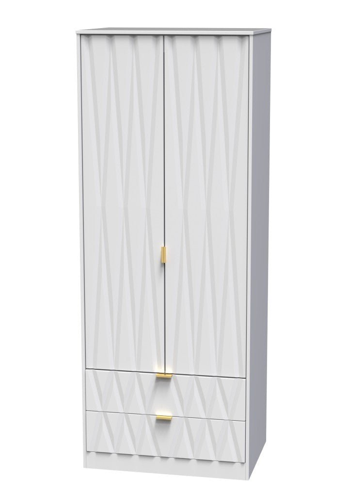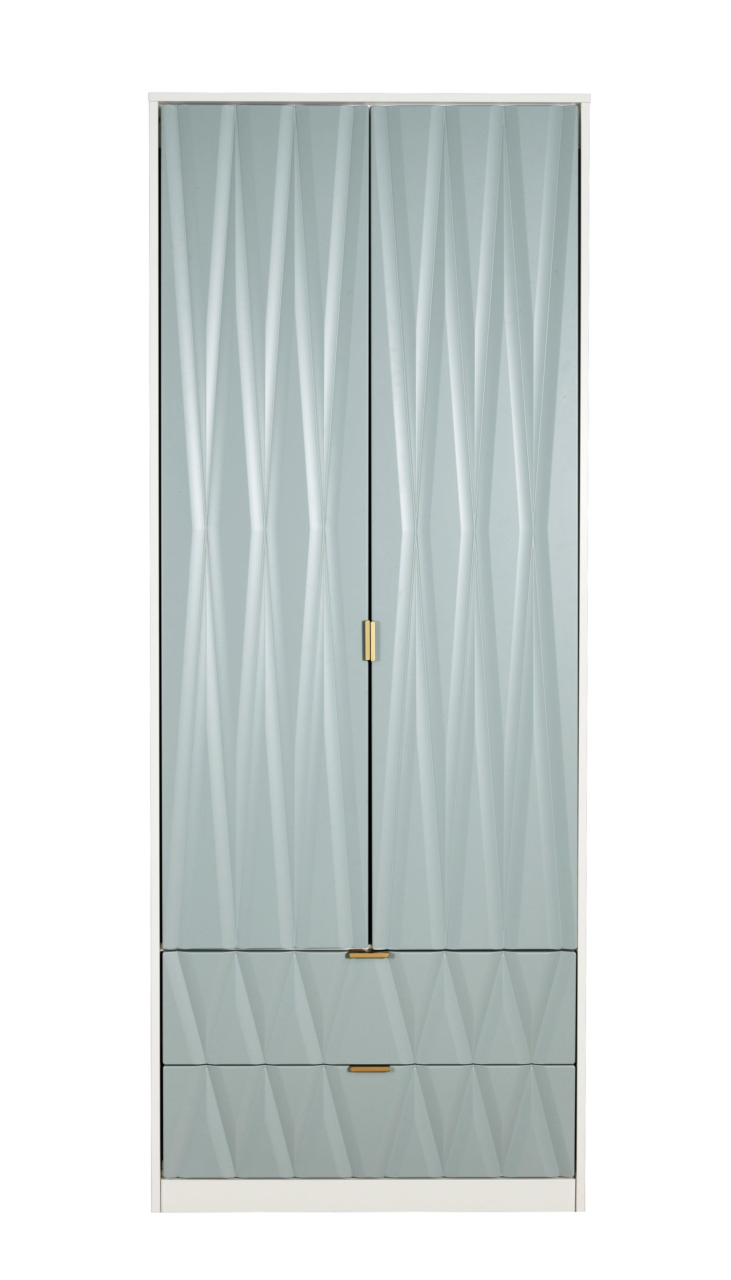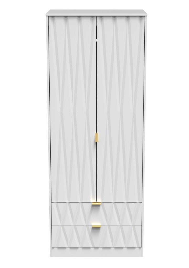 Add some Art Deco luxury to your bedroom with the elegantly textured Diamond collection. Its simple, minimal and effective design fits perfectly into any room of your home. The Diamond 2 Door 2 Drawer Wardrobe features a retro and modern, gold hairpin legs. The 2 doors hide ample storage space for your clothing, as well as providing functional use of space. Use the 2 full width drawer for storage of other items, such as shoes or folded clothing. Assembled before delivery for a stress-free purchasing experience.