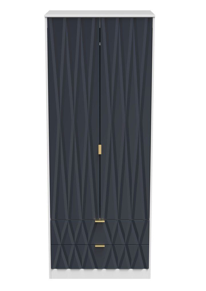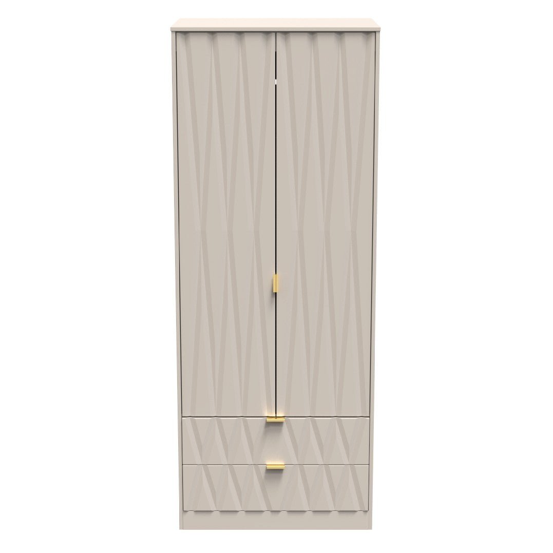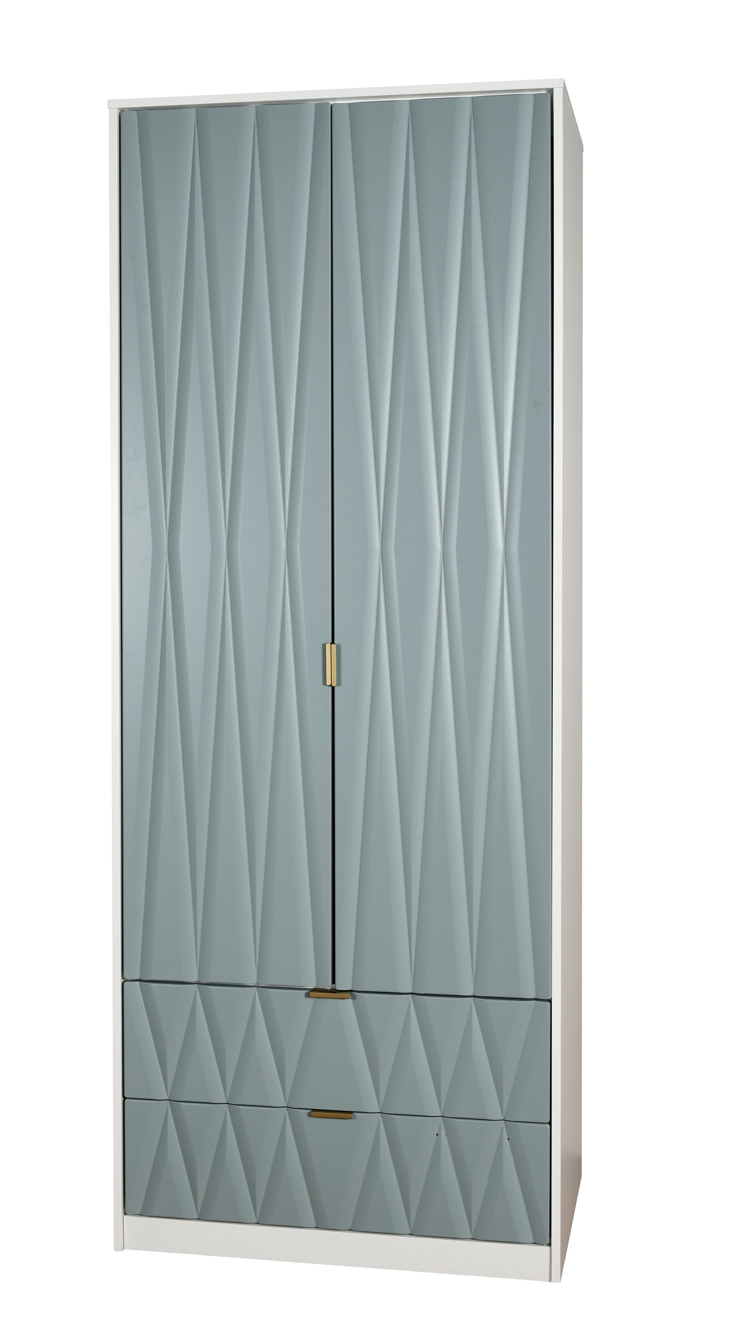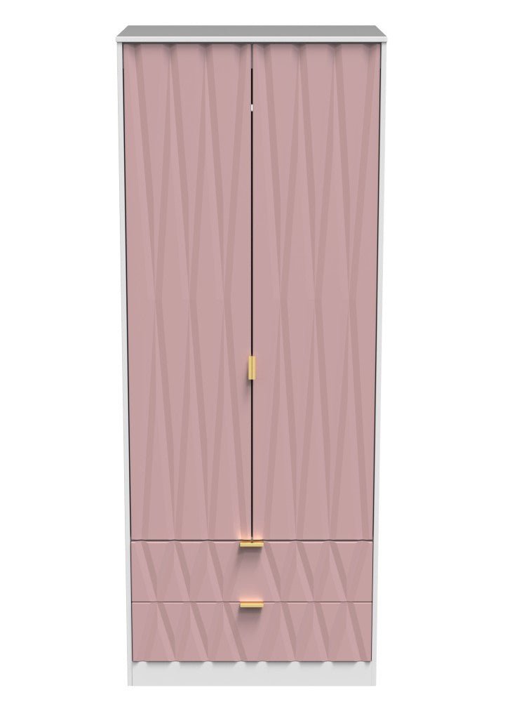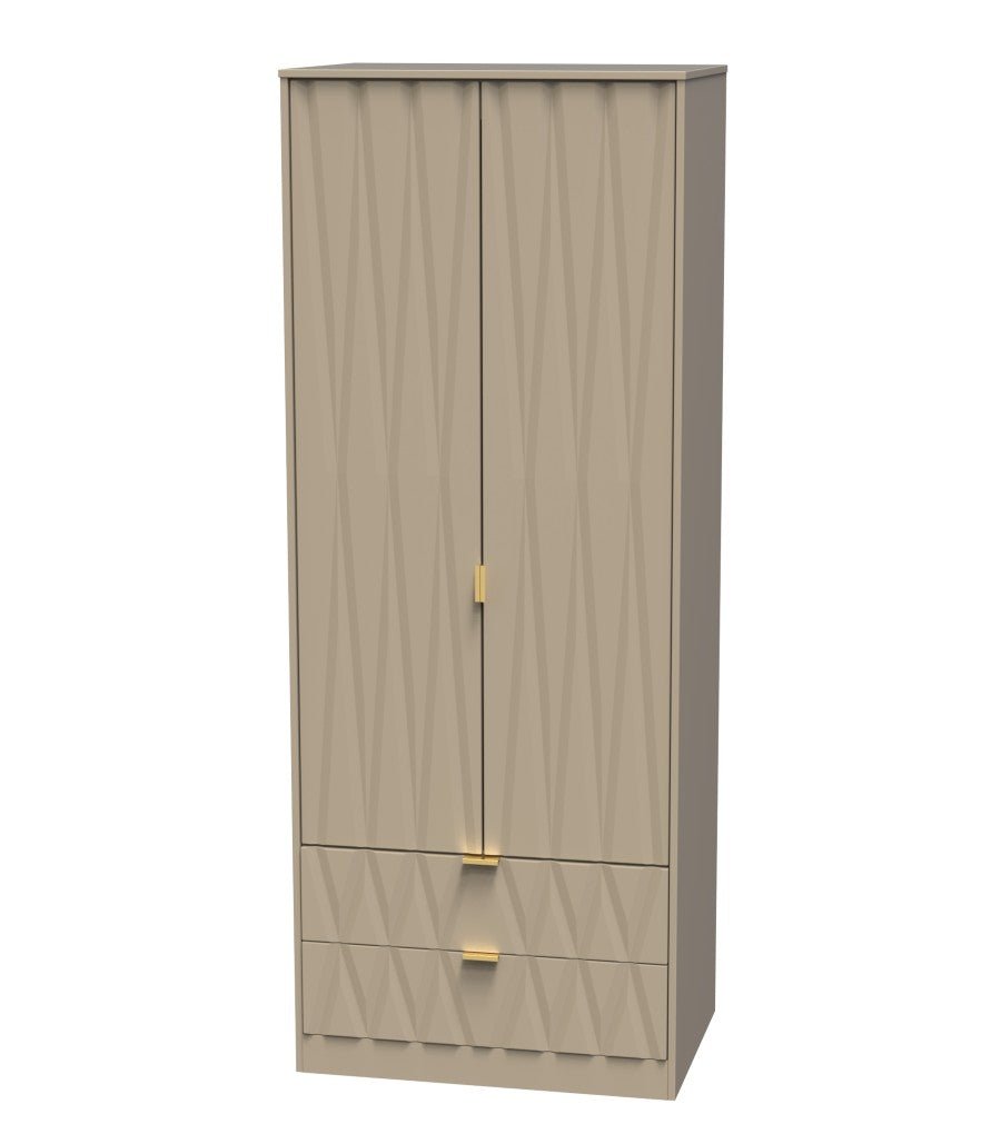 Add some Art Deco luxury to your bedroom with the elegantly textured Diamond collection. Its simple, minimal and effective design fits perfectly into any room of your home. The Diamond 2 Door 2 Drawer Wardrobe features a retro and modern, gold hairpin legs. The 2 doors hide ample storage space for your clothing, as well as providing functional use of space. Use the 2 full width drawer for storage of other items, such as shoes or folded clothing. Assembled before delivery for a stress-free purchasing experience.