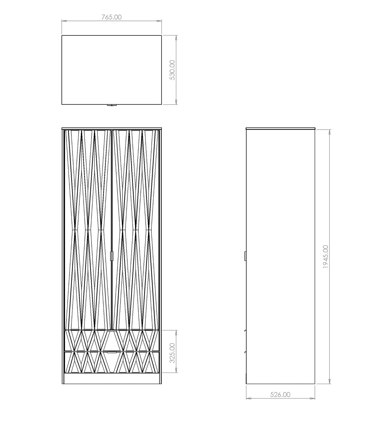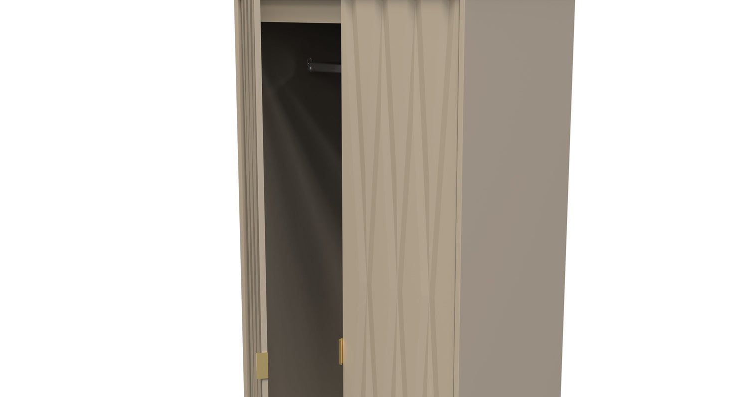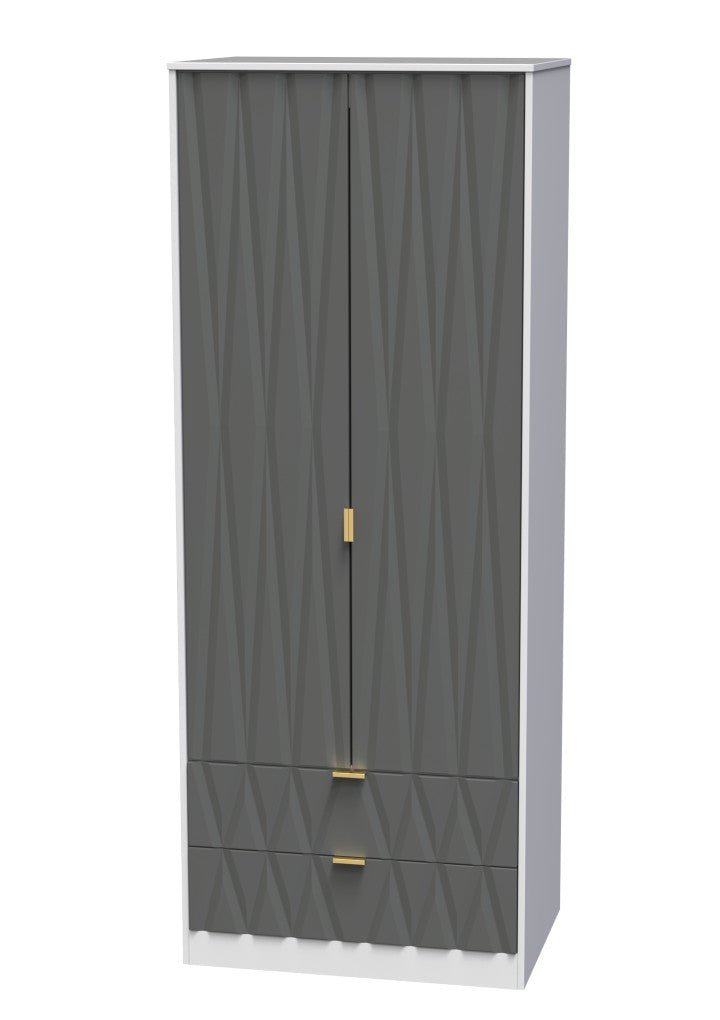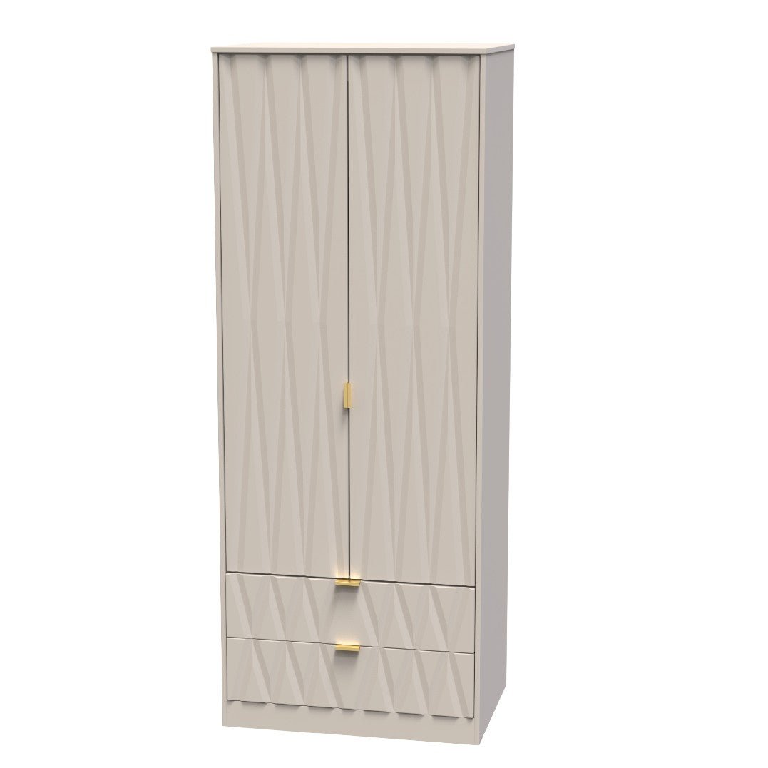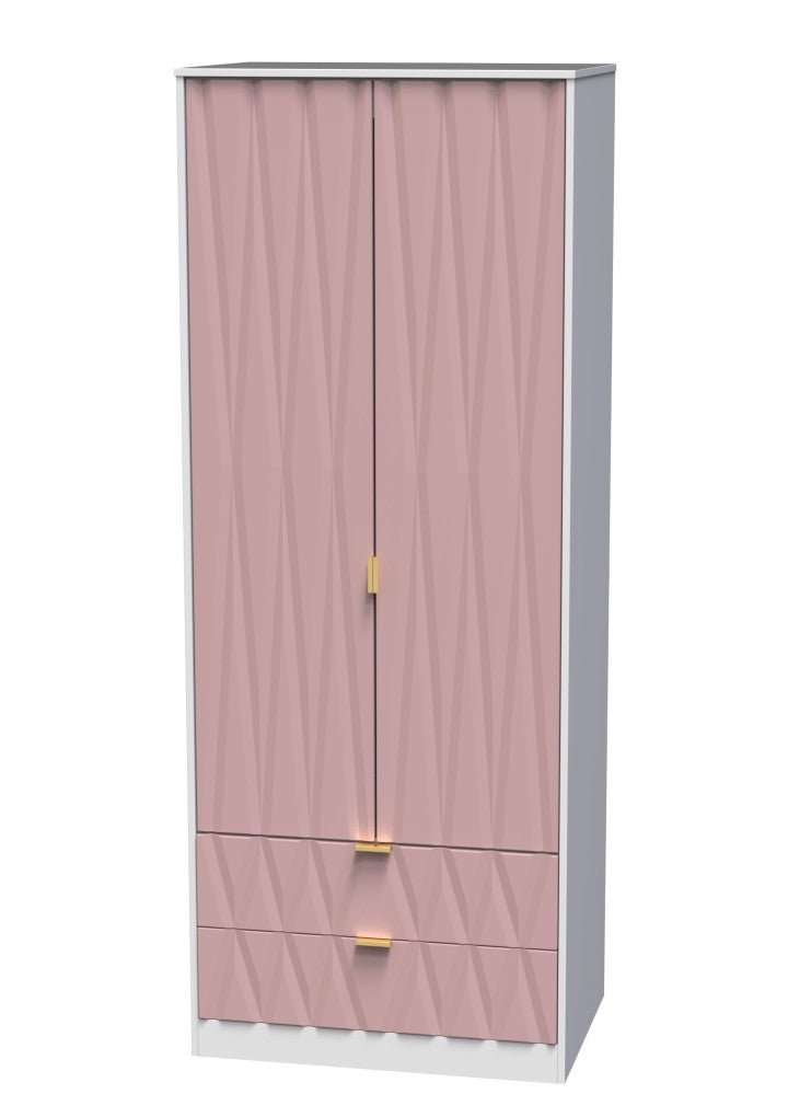 Add some Art Deco luxury to your bedroom with the elegantly textured Diamond collection. Its simple, minimal and effective design fits perfectly into any room of your home. The Diamond 2 Door 2 Drawer Wardrobe features a retro and modern, gold hairpin legs. The 2 doors hide ample storage space for your clothing, as well as providing functional use of space. Use the 2 full width drawer for storage of other items, such as shoes or folded clothing. Assembled before delivery for a stress-free purchasing experience.