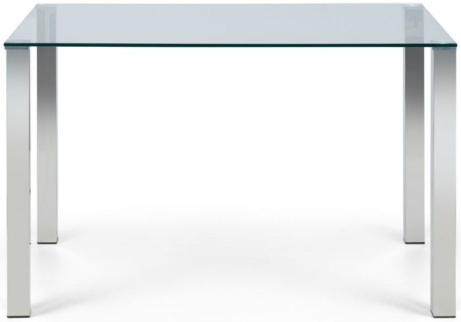 The Enzo is a contemporary and compact chrome and tempered glass dining table that is perfect for modern living. The clean and crisp finish forms a versatile look that fits with a variety of different dining chair styles.