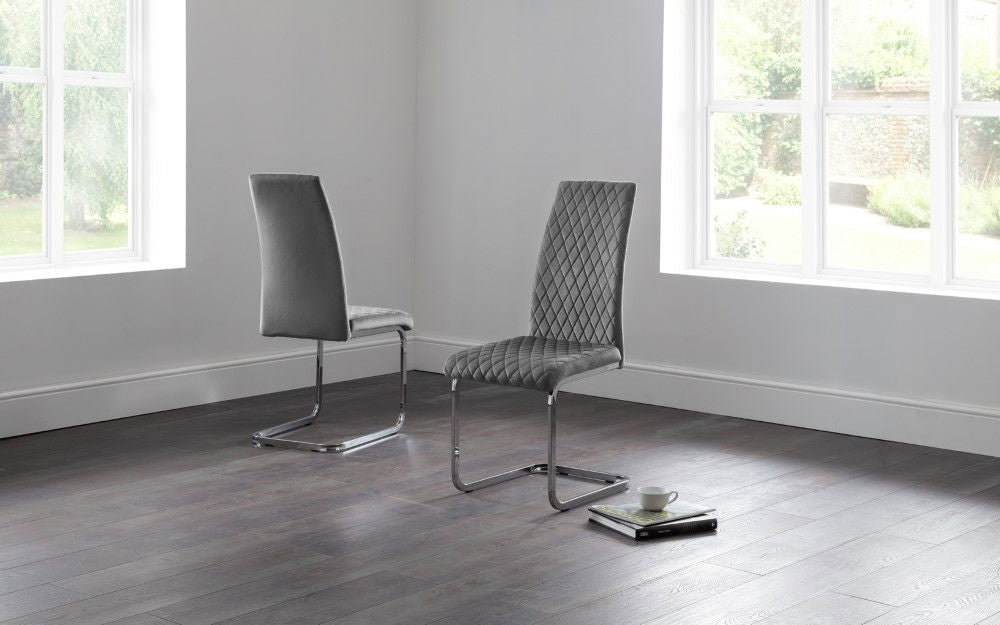 - Four Grey Calabria Chairs – elegant and comfortable seating for any occasion
