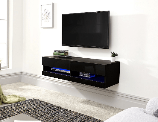 Inject some style into your living room with this wall mounted TV unit. With sleek lines andminimal interior it provides a contemporary storage space, complementing your flat screen TV perfectly.The compartments are designed to accommodate AV equipment, complete with LED downlight and open slot feature. There’s also space on top for a few well-chosen accessories.