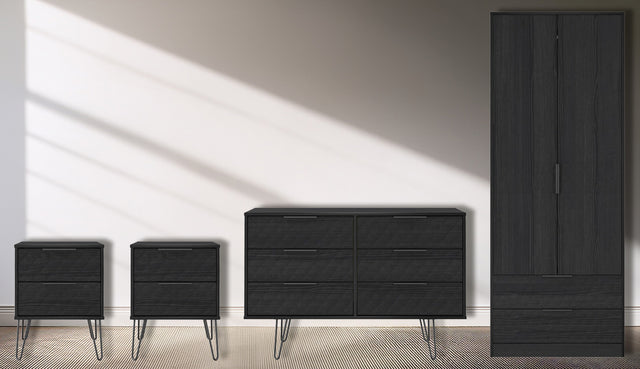 The Harlequin 4 Piece Bedroom Set with Black Hairpin Legs is a bold and modern collection designed to bring instant style and functionality to your bedroom. Available in seven stunning colours, this set is perfect for creating a standout look tailored to your space.