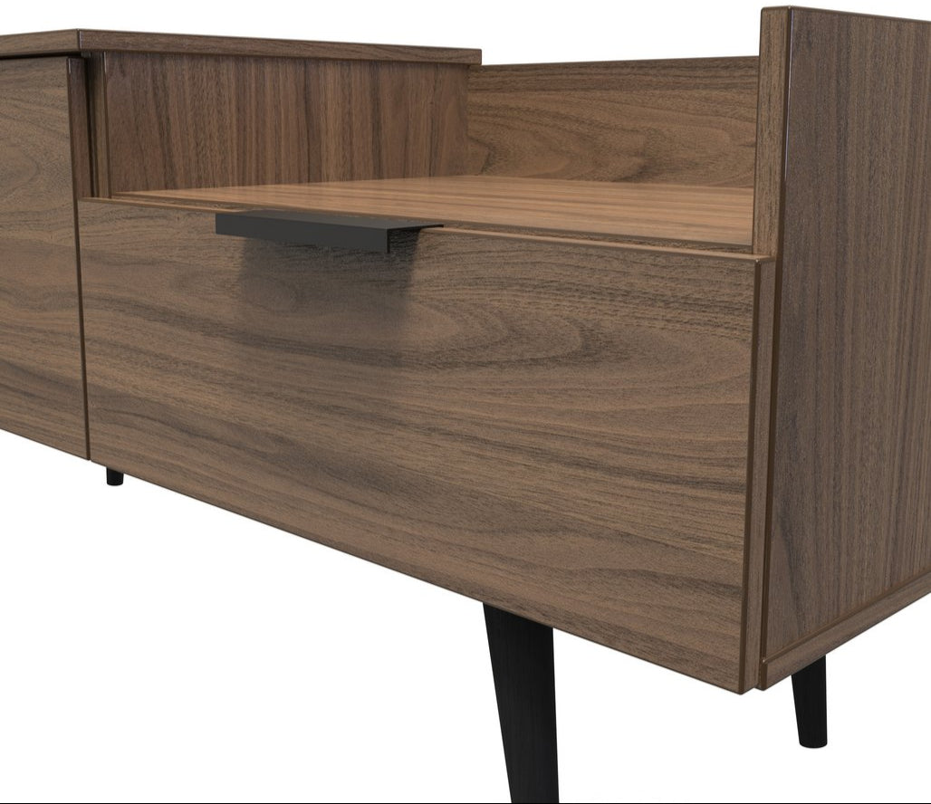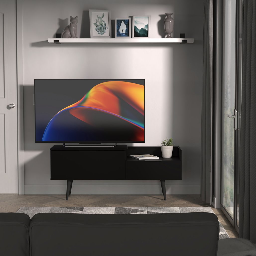 Ideal for smaller setups or minimalist styles, this unit offers open compartments for consoles, streaming devices, and décor, keeping your space organised and clutter-free. Available in five attractive finishes—from the boldness of Black Matt to the warmth of Carini Walnut or the contrast of Grey Matt & White Matt—there’s a look to suit every home.