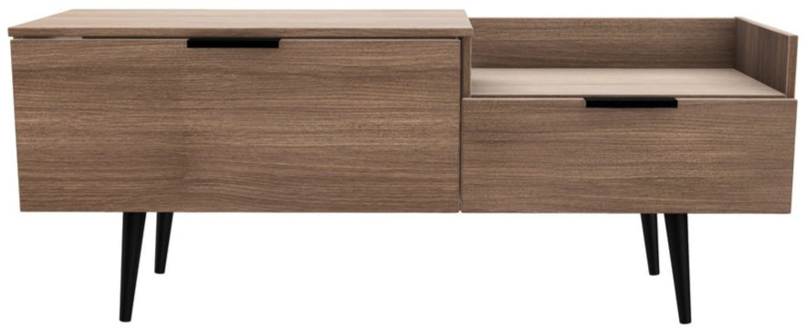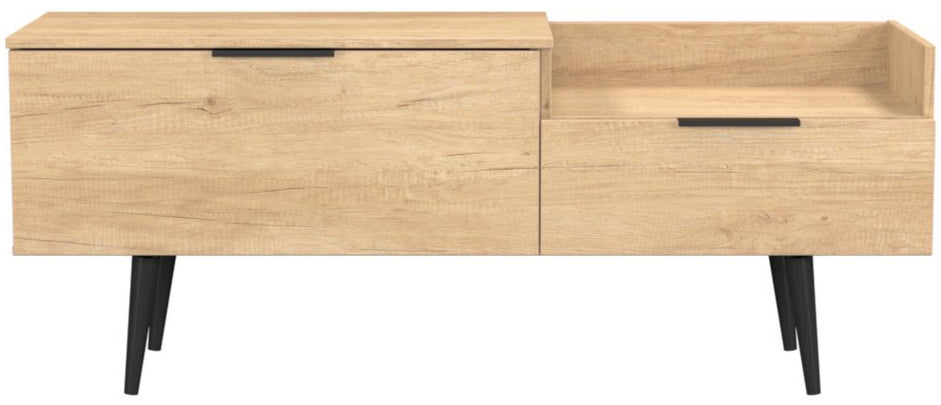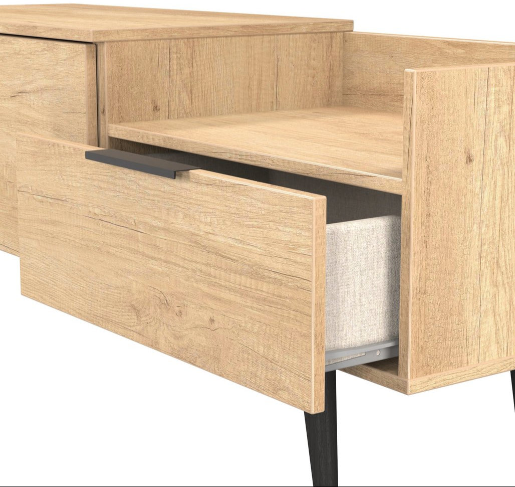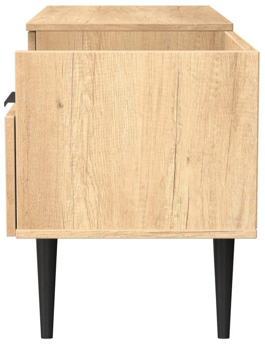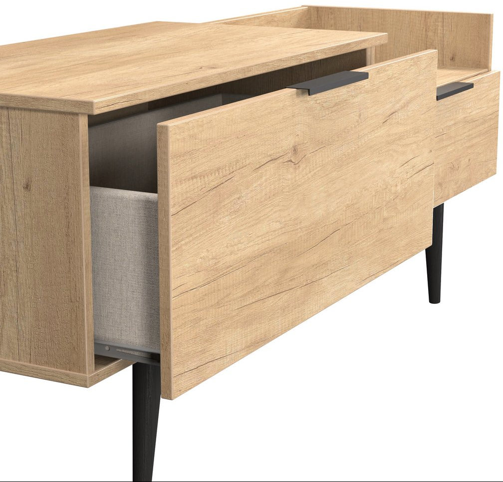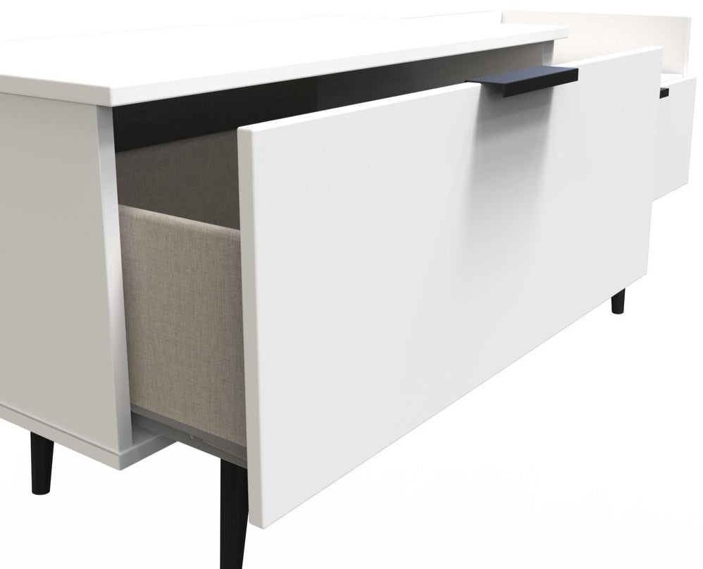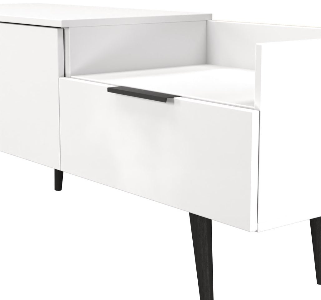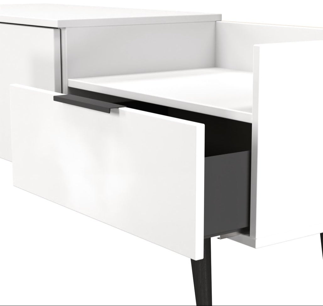 Modern and space saving, the Hong Kong TV Console Unit with Black Legs is the perfect way to bring simple organisation to your living room space. With open shelving paired with two drawers there's plenty of storage space for gaming consoles, physical media and more.
