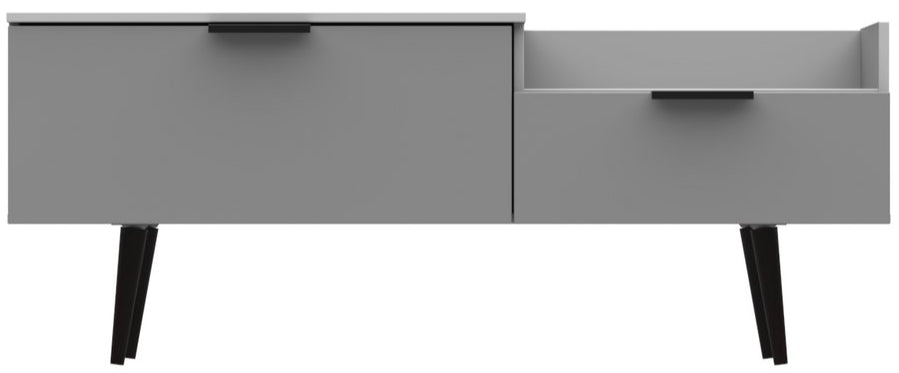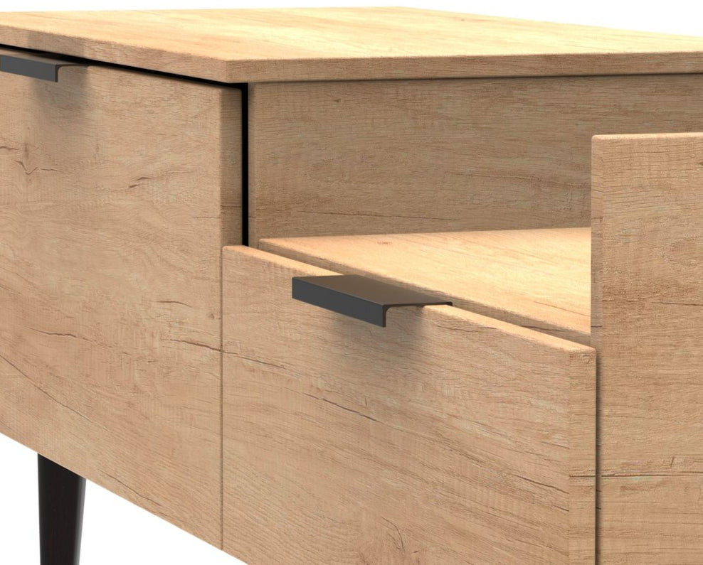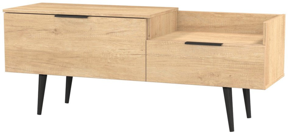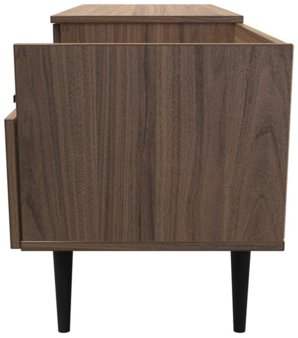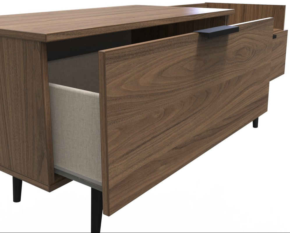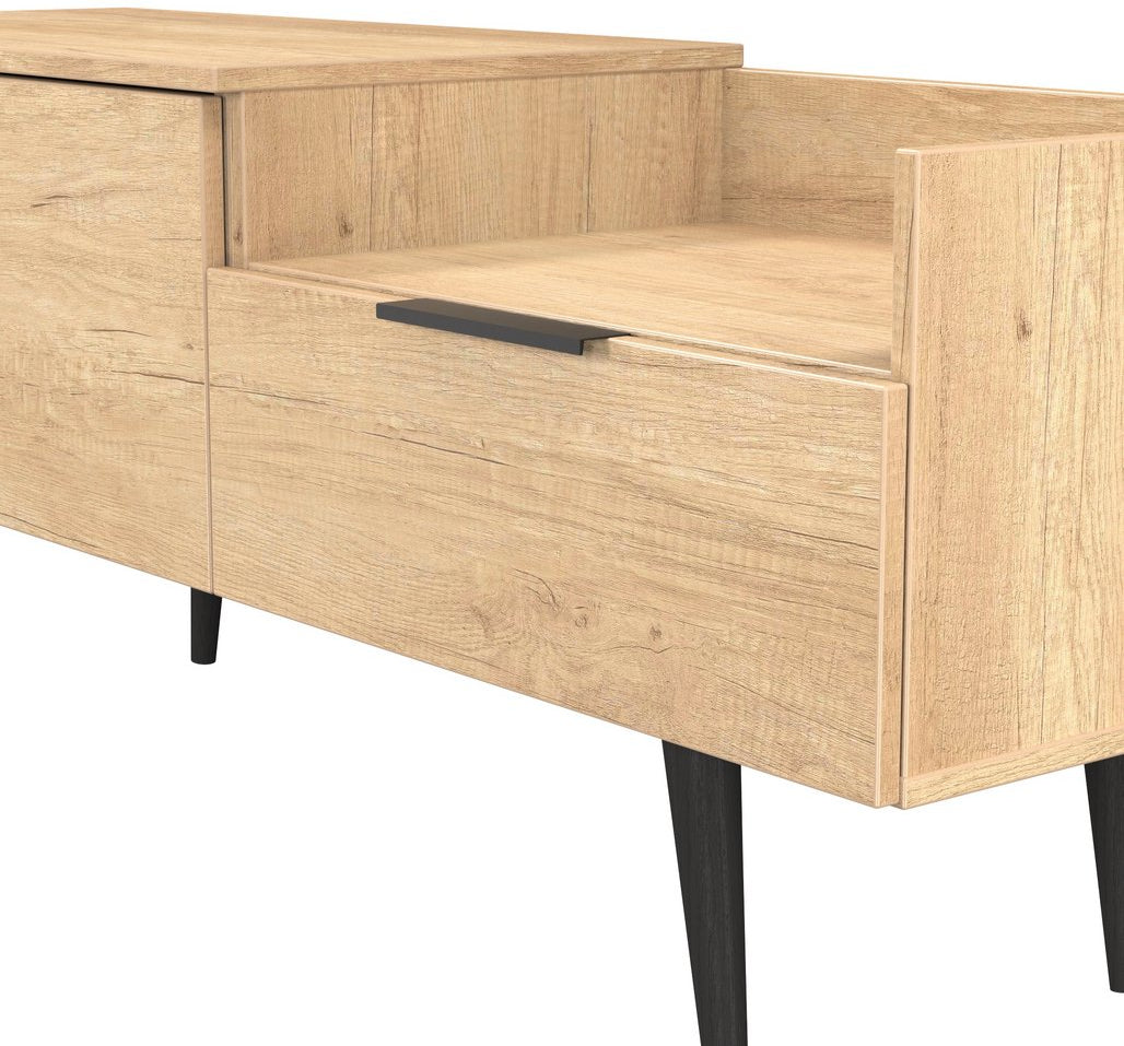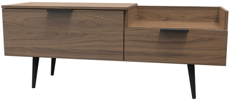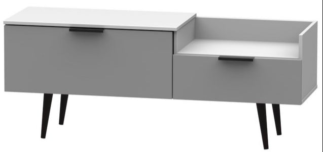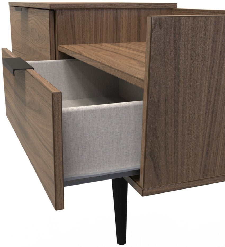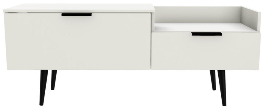 Modern and space saving, the Hong Kong TV Console Unit with Black Legs is the perfect way to bring simple organisation to your living room space. With open shelving paired with two drawers there's plenty of storage space for gaming consoles, physical media and more.