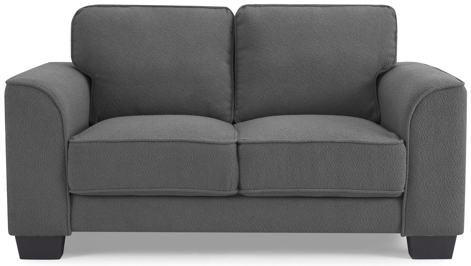 - Upholstered in soft, dark grey boucle fabric