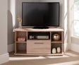 Knightsbridge 1 Drawer Corner TV Unit with Open Shelving - Light Oak is backordered and will ship as soon as it is back in stock.
