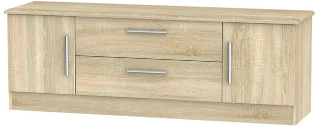 Upgrade your entertainment space with the Knightsbridge Wide 2 Door 2 Drawer TV Unit in Bardolino Oak. Designed for modern living, it features two spacious cupboards and two long drawers for neatly concealing media accessories, wires, and more. Finished with sleek metal bar handles and available in five contemporary colours, it arrives fully assembled for hassle-free setup.