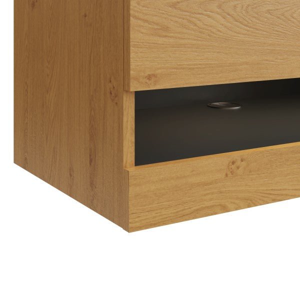 Store your audio and video equipment in style with the Leon wall-mounted storage unit. Perfect for your flat-screen TV, this dual-compartment unit features a minimalist design. The top surface offers space for accessories, while an LED downlight enhances its sleek, open slot construction.