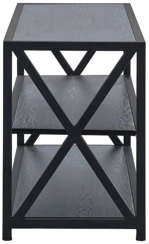 The Lima TV Unit with 2 Open Shelves is a sleek and practical solution for modern living rooms. Designed with a minimalist aesthetic, it features a black ash finish paired with a sturdy black metal frame, delivering a refined industrial look that complements contemporary interiors.