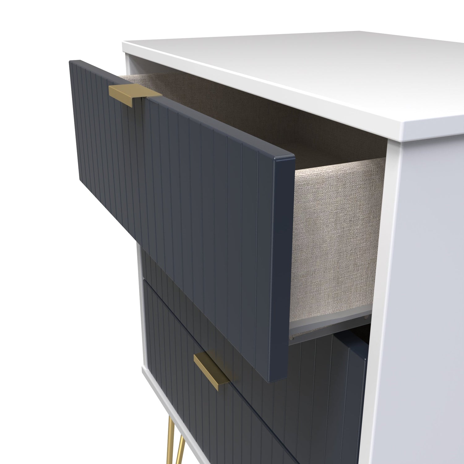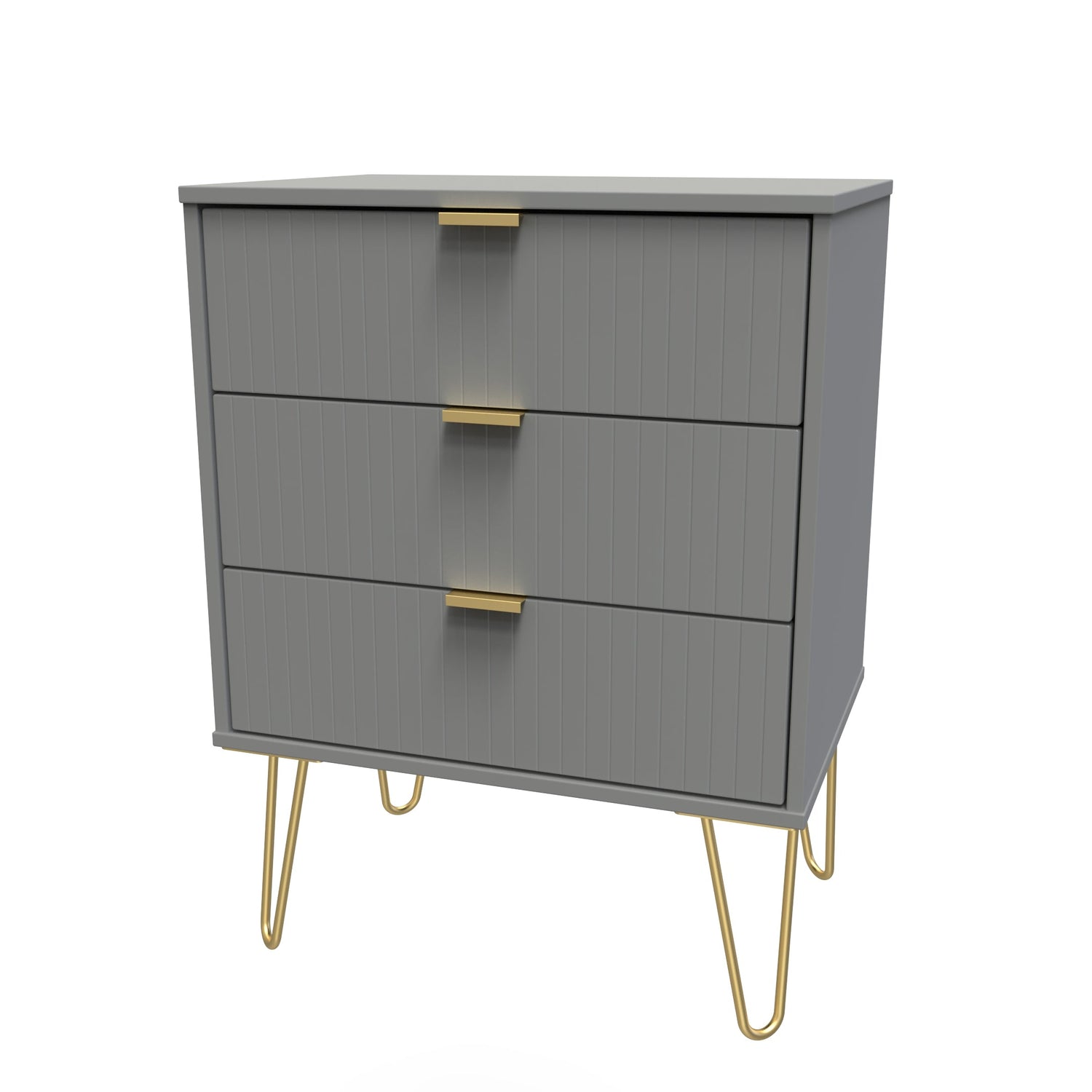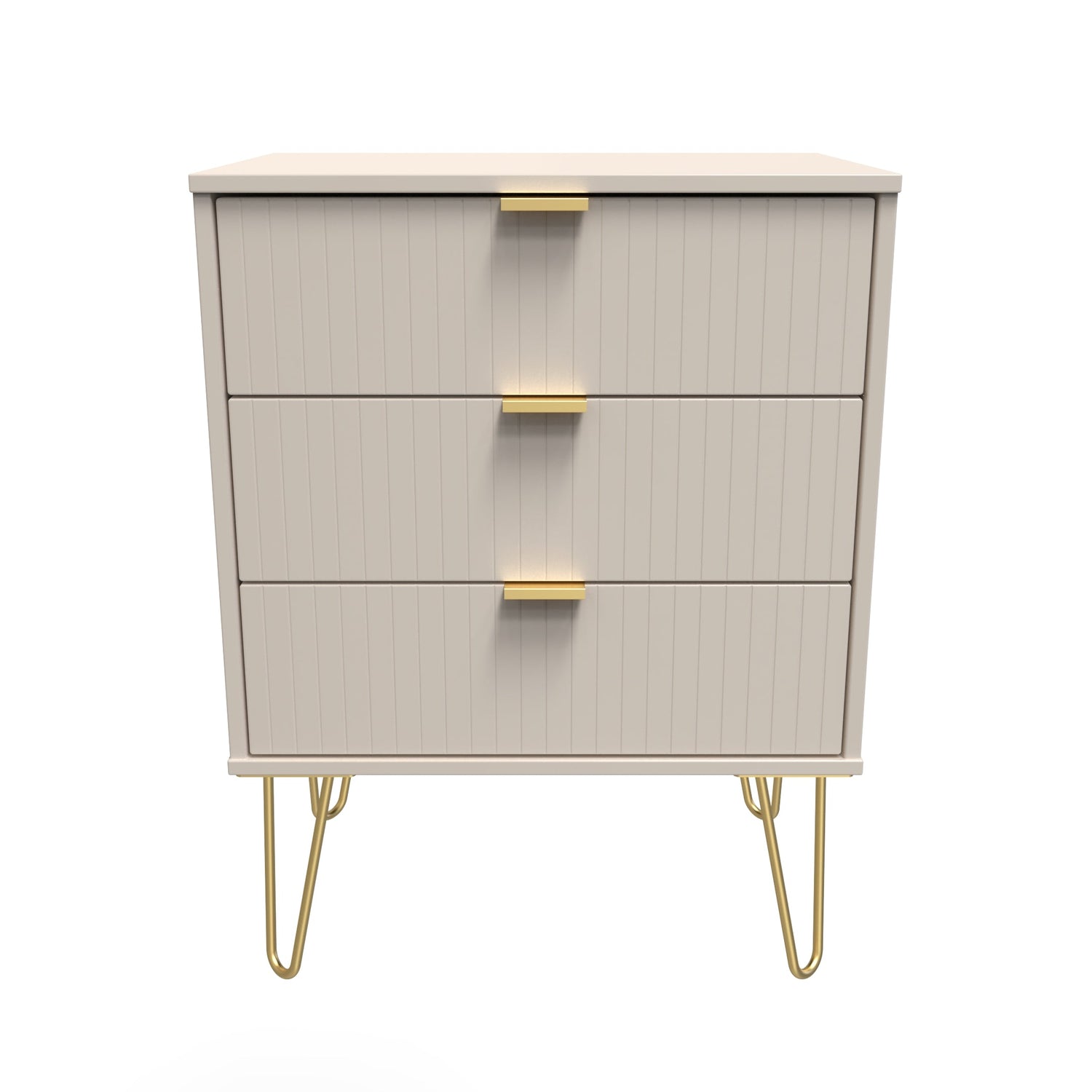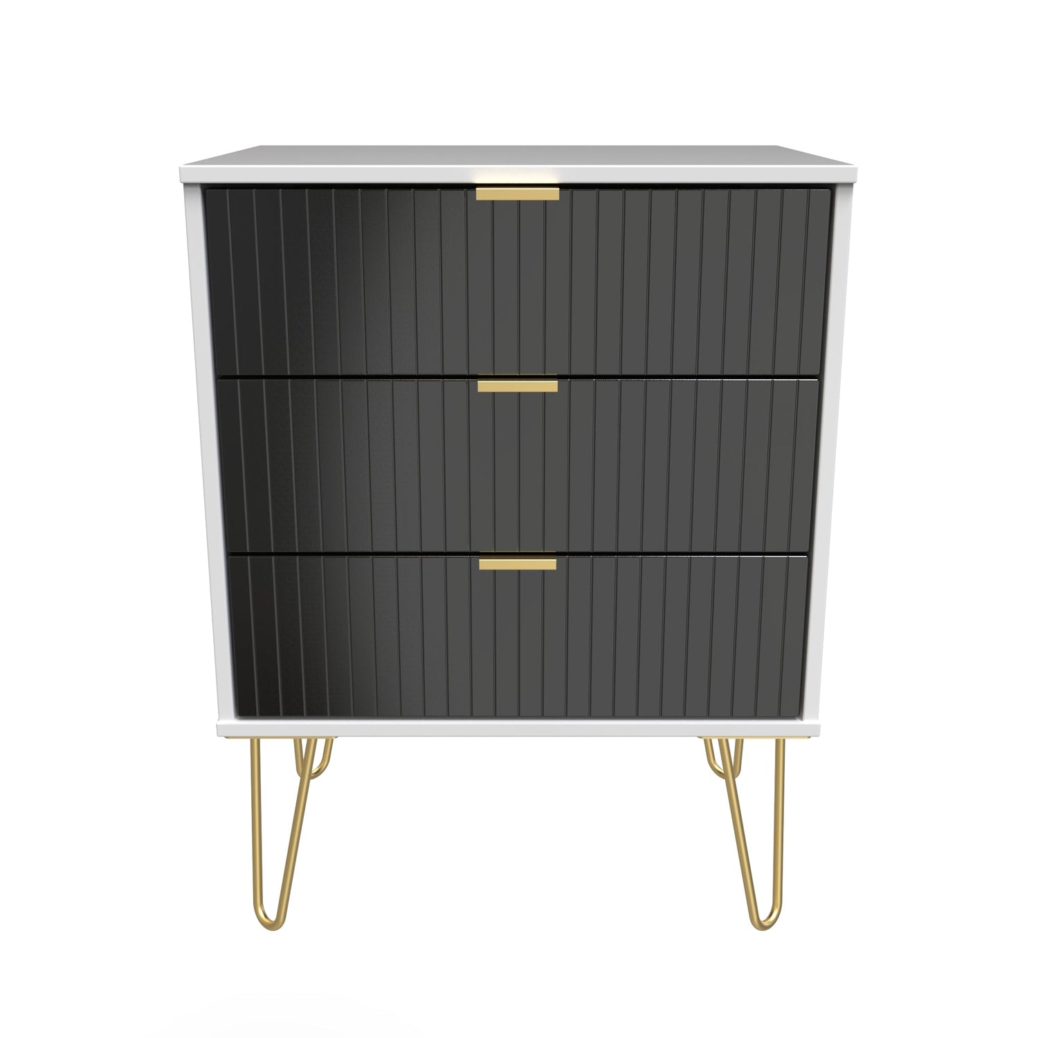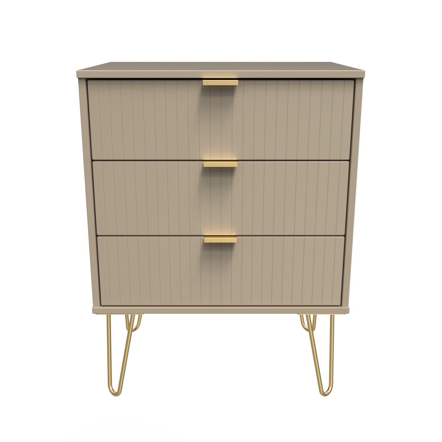 Add some contemporary art deco luxury to your bedroom with the elegantly textured Linear collection. Its simple, minimal and elegant design blends effortlessly into any room interior. The Linear 3 Drawer Midi Chest features clean, straight edges and retro, gold hairpin legs. The drawers are perfect for storing essentials, as well as providing functional space for decorative pieces on the table top. Assembled before delivery for a stress-free purchasing experience.