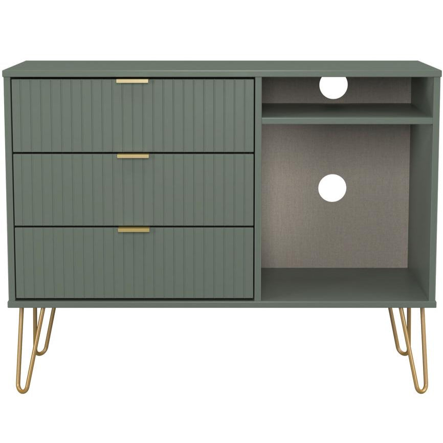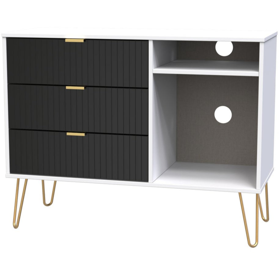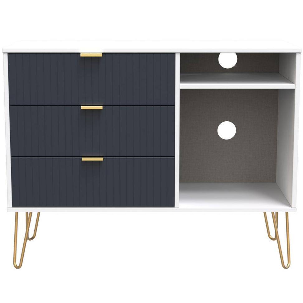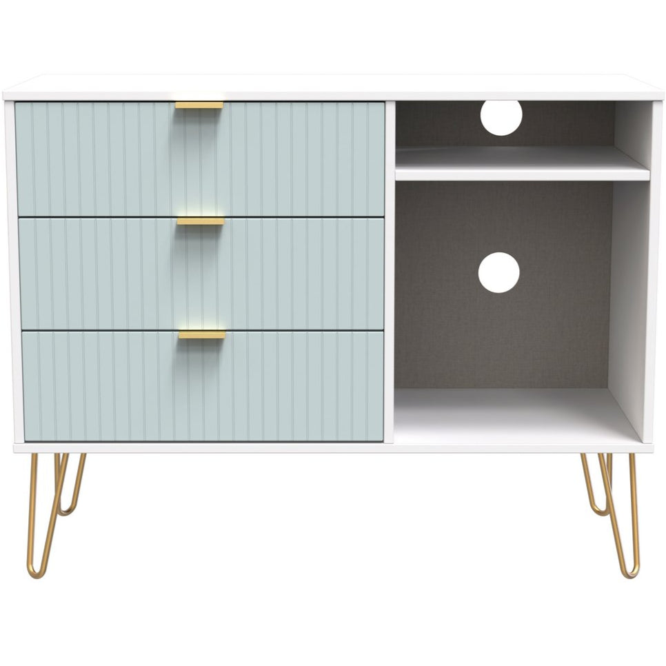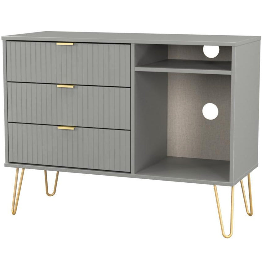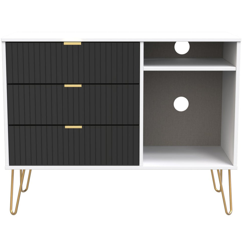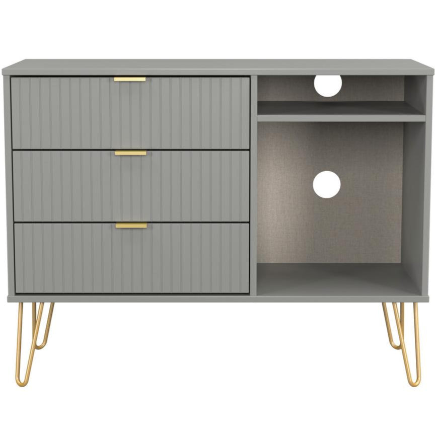 Linear 3 Drawer Open Shelf TV Unit with Gold Hairpin Legs