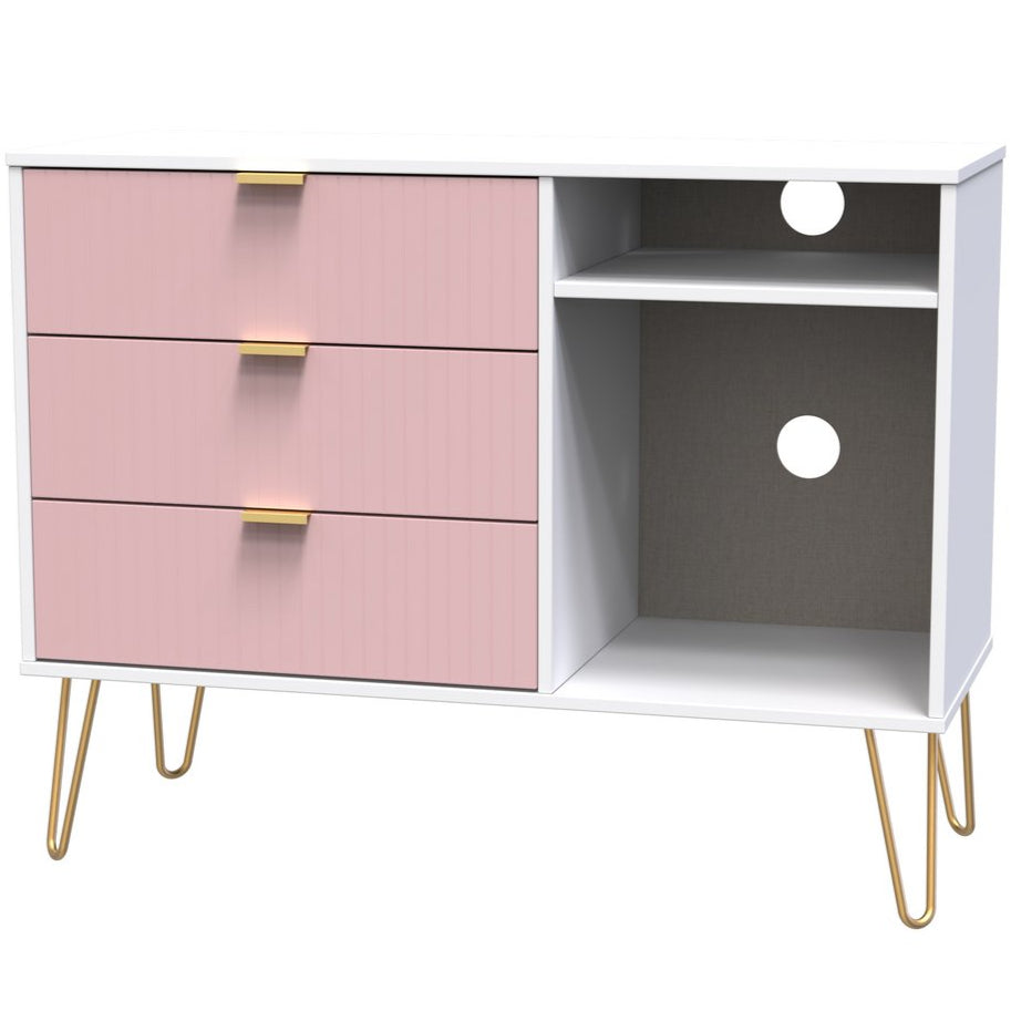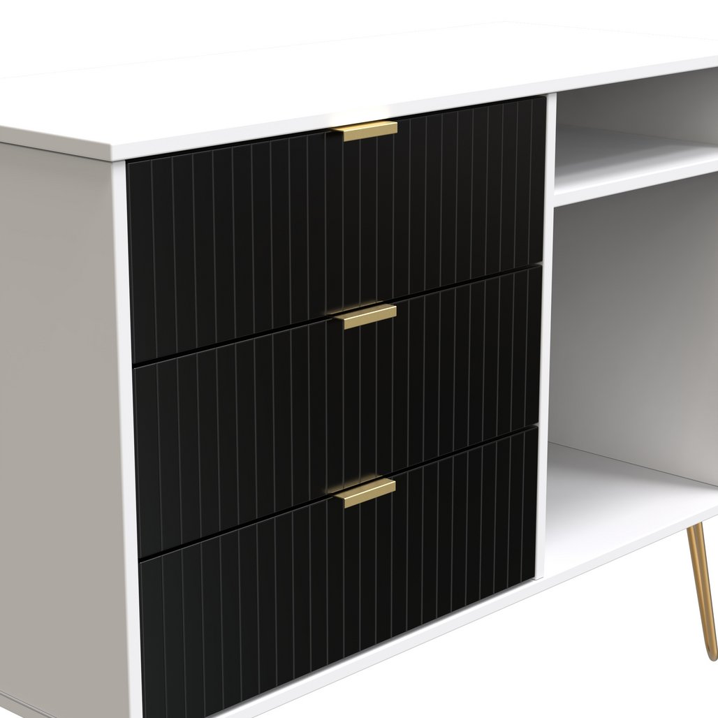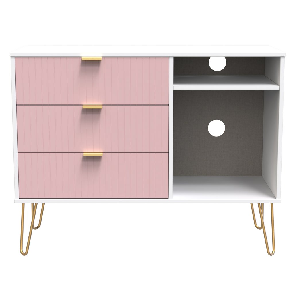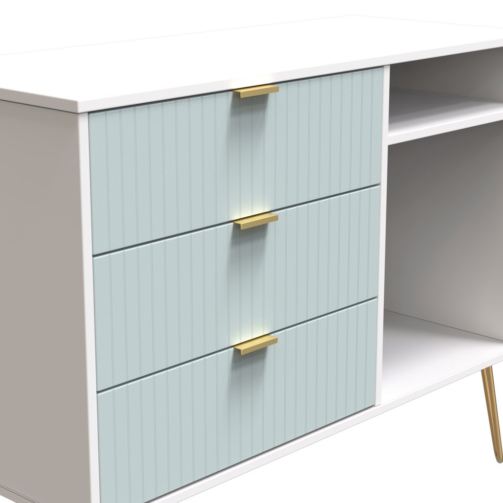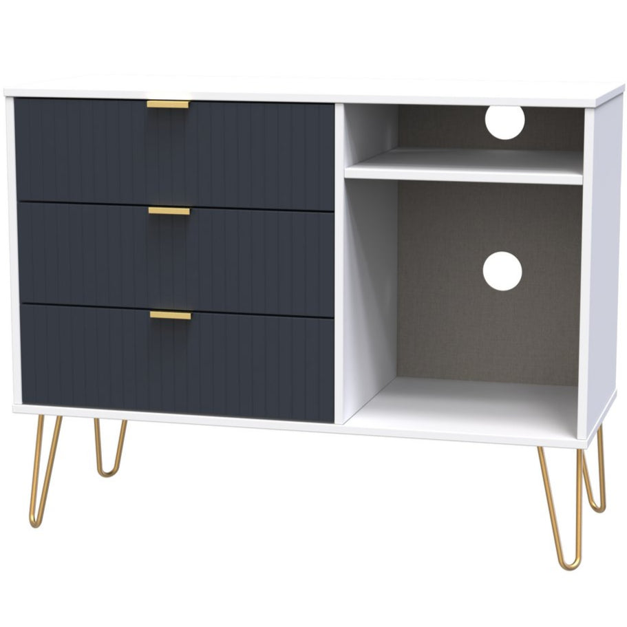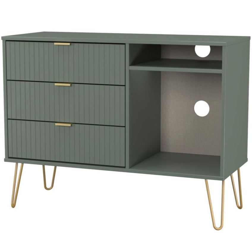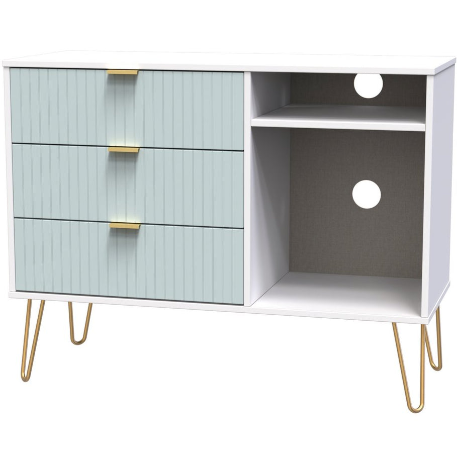 Linear 3 Drawer Open Shelf TV Unit with Gold Hairpin Legs