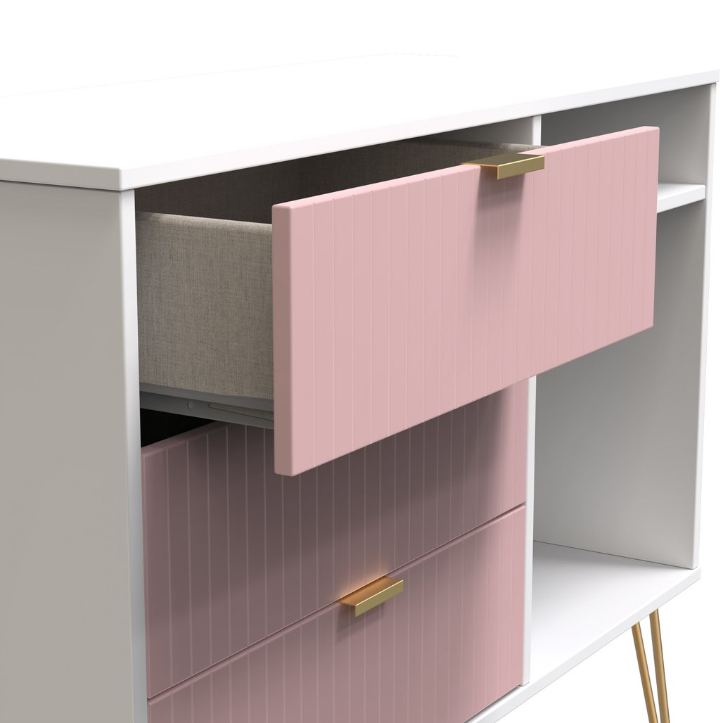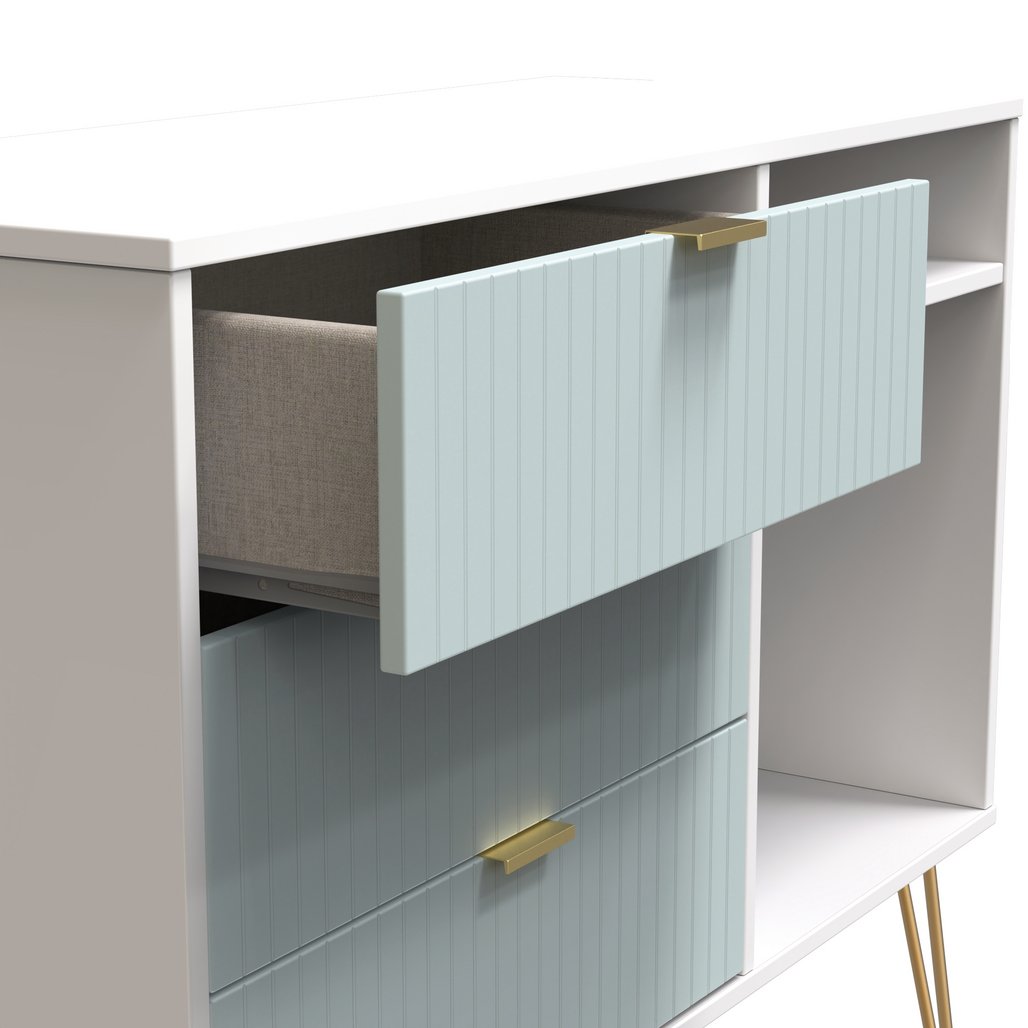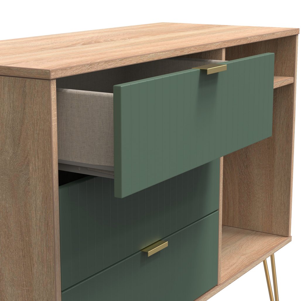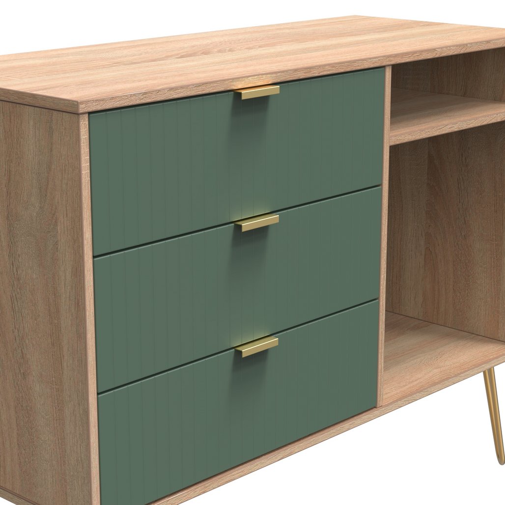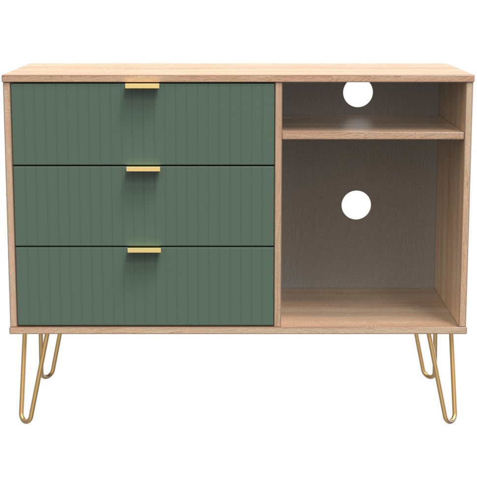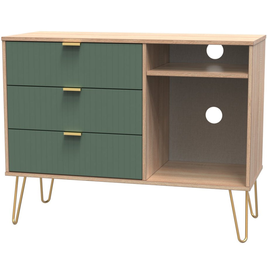 Linear 3 Drawer Open Shelf TV Unit with Gold Hairpin Legs