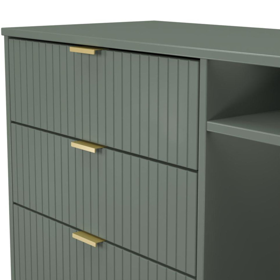 This unit includes one small upper shelf and a large open space underneath, ideal for housing media devices, consoles, or decorative items. Three spacious drawers provide ample concealed storage for DVDs, remotes, and accessories, keeping your living area neat and organised.